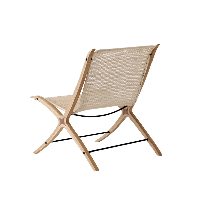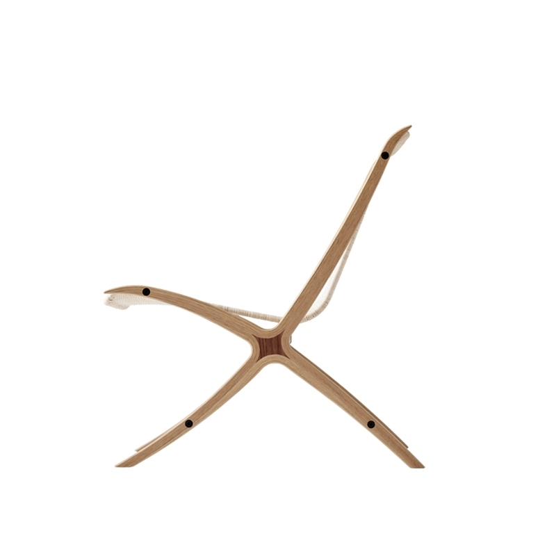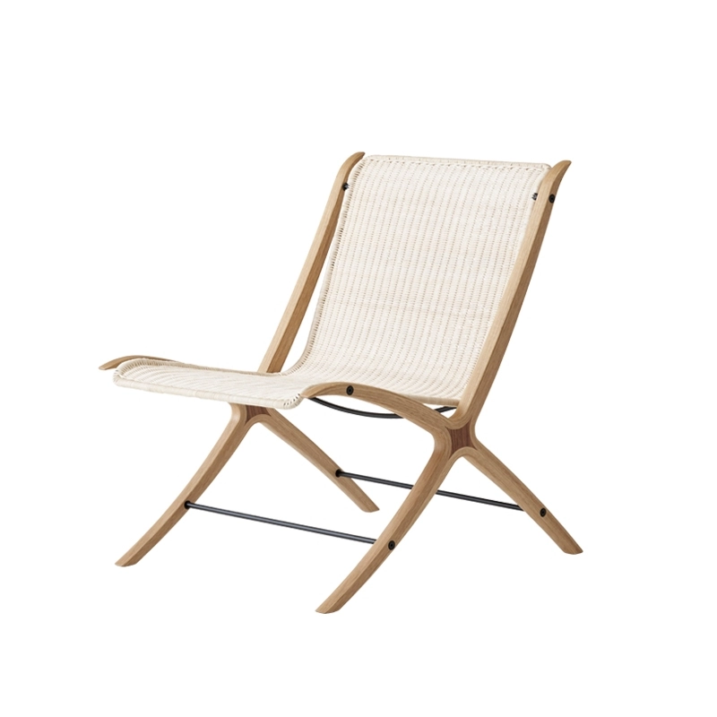 Avec une relation intrigante entre matériau et concept, le fauteuil X HM10 représente l’apogée de Hvidt & Mølgaard en tant que designers. Après avoir expérimenté pendant des années un concept de structure en bois inspiré par les anciennes raquettes de tennis, le duo de designers présentent en 1959, un fauteuil lounge doté d’une silhouette inclinée distinctive et d’une esthétique discrète. Pièce design extrêmement élégante qui consolide leur réputation de pionnier du design danois, le fauteuil X reflète la manière peu orthodoxe dont Hvidt et Mølgaard abordent les principes de construction. Les croquis d’archive montrent comment les designers ont examiné et testé les matériaux pour s’arrêter sur une assise en rotin tressé, soutenue par une structure gracieuse en chêne huilé. Le fauteuil se démarque aussi par son insert en noyer savamment conçu, qui contraste avec le chêne. Avec ses proportions réduites et ses matériaux naturels, le fauteuil X HM10And Tradition trouve sa place dans tous types d’espaces.