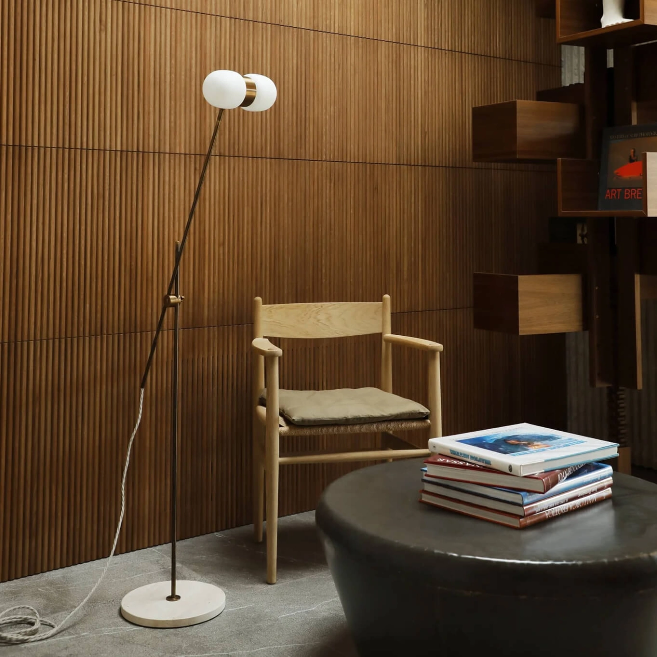 Pensé comme une pièce sculpturale, le lampadaire Double Floor de Contain apporte verticalité et structure à l’espace. Fondée à Majorque, la marque privilégie des lignes équilibrées et une lumière maîtrisée pour concevoir des luminaires à la fois fonctionnels et expressifs. La silhouette élancée du Double Floor crée un point focal discret mais affirmé. La diffusion lumineuse, douce et homogène, enveloppe la pièce d’une atmosphère chaleureuse tout en dessinant des zones de relief et de profondeur. Adapté aux intérieurs résidentiels comme aux projets contract, ce lampadaire dialogue naturellement avec l’architecture environnante. Le lampadaire Double Floor reflète le soin apporté aux matériaux et aux finitions, dans une approche contemporaine fidèle à l’identité et à l’exigence esthétique de Contain.