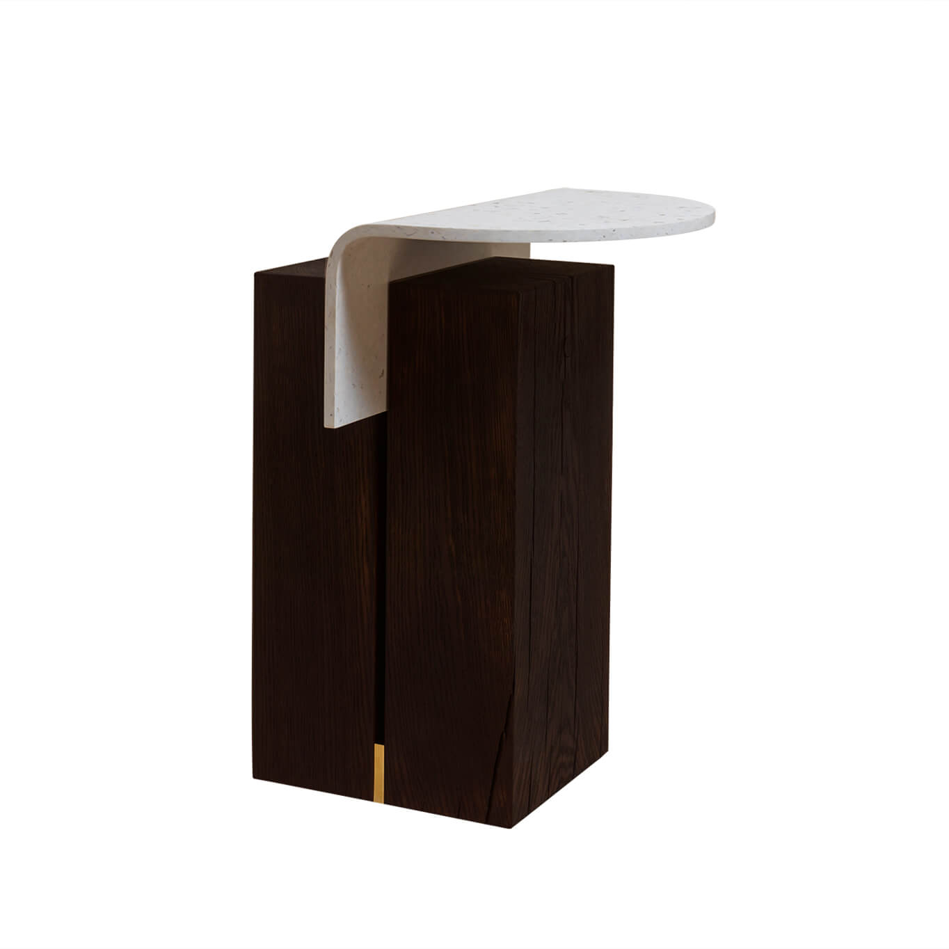 Chêne recyclé teinté au brou de noix, plastique recyclé, laiton