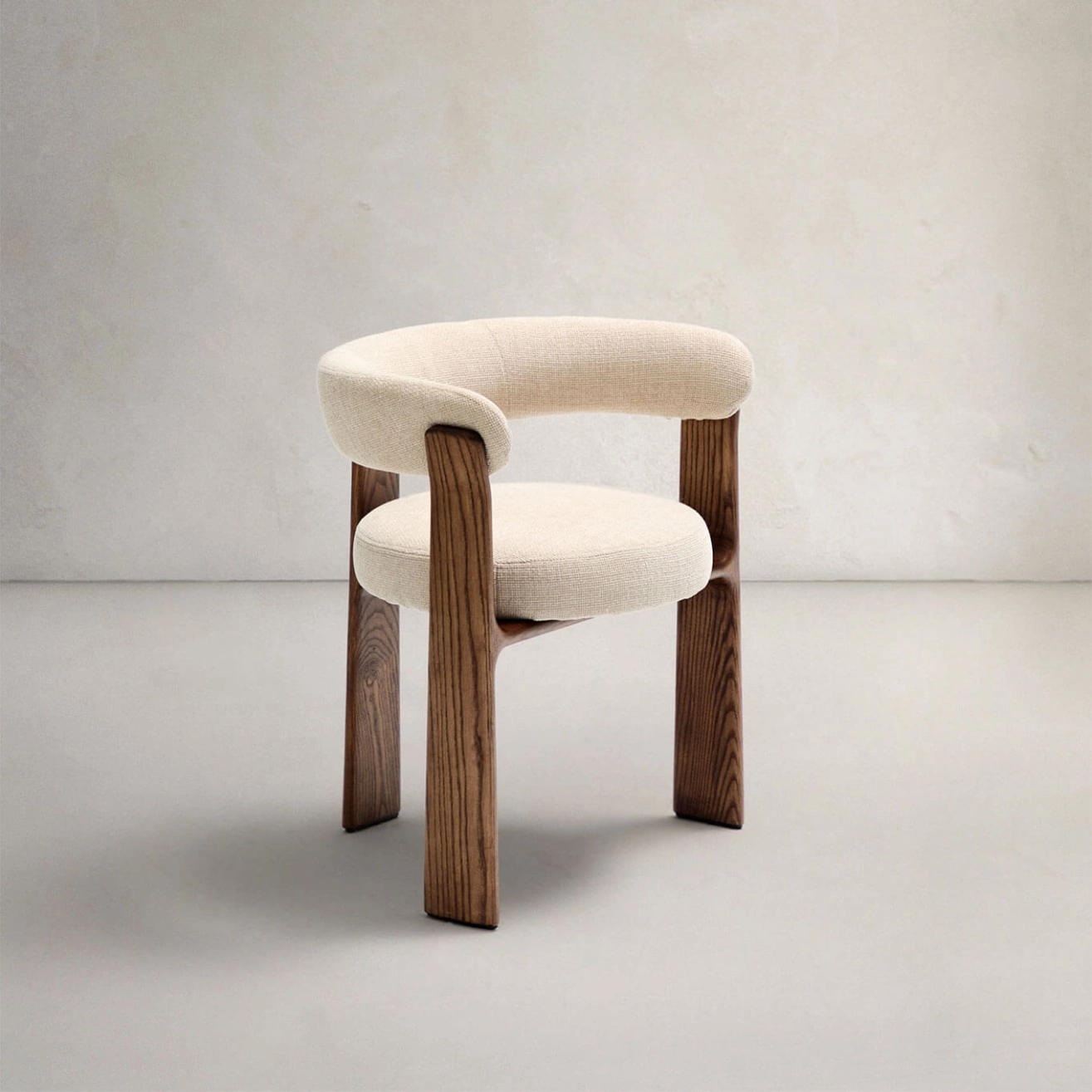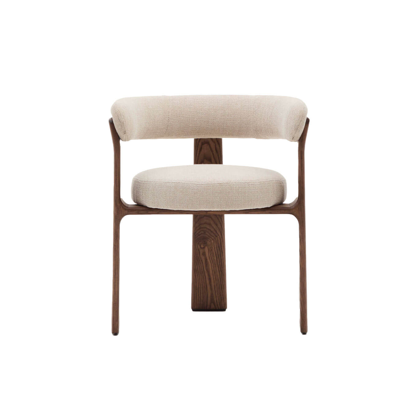 chaise Granite repose sur une base à trois pieds en bois de frêne massif, finition noyer, qui lui confère stabilité et robustesse. Ce bois est certifié