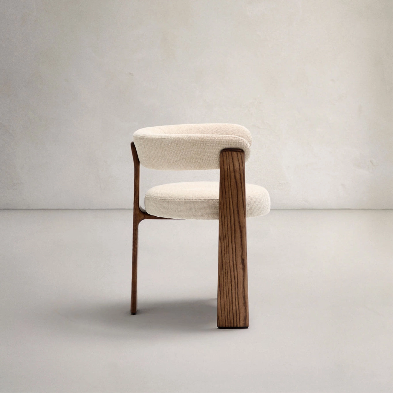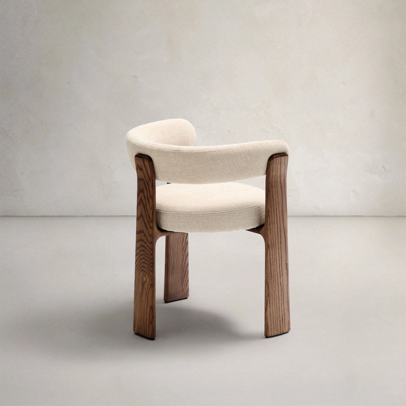 élégance intemporelle, inspirée du style scandinave des années 70, avec des formes généreuses, enveloppantes et résolument modernes. Son assise et son dossier sont habillés d’un tissu chenille épais, au toucher doux et chaleureux, dans une teinte beige bicolore subtilement nuancée. Ce tissu est composé de