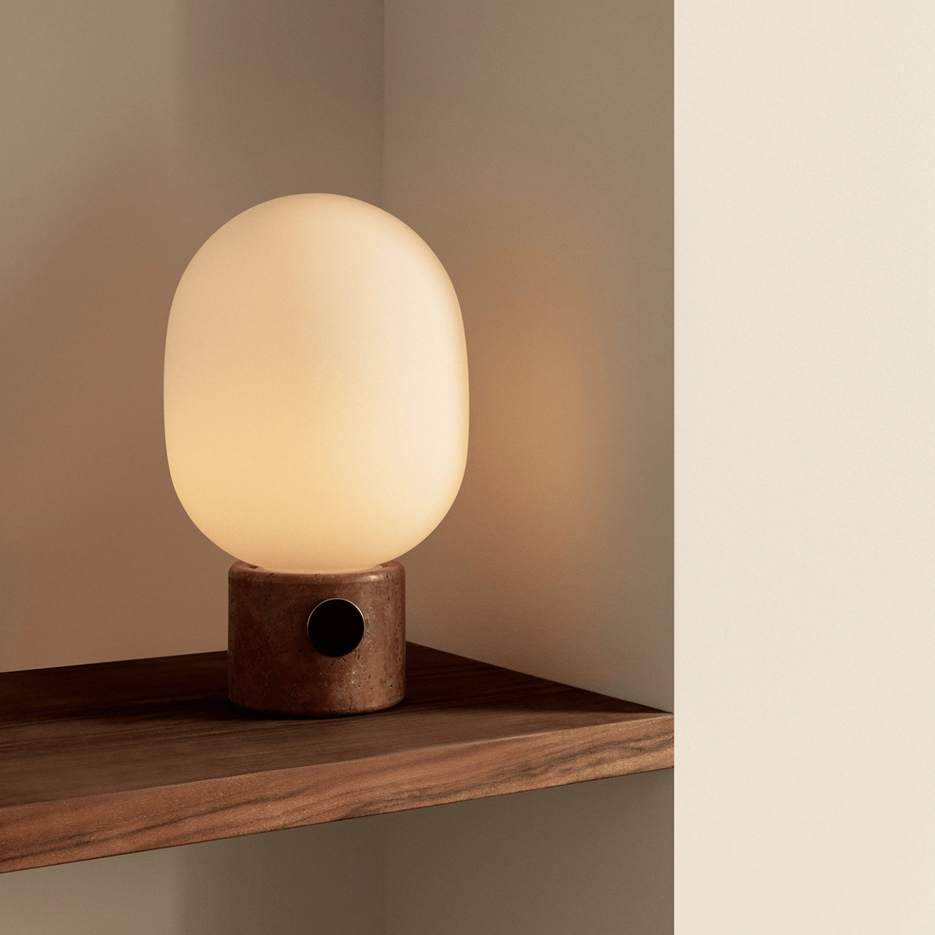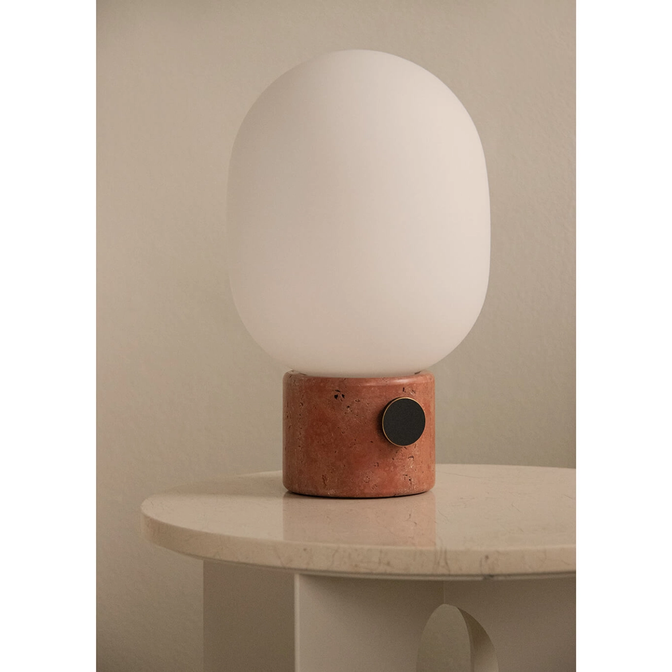 La lampe à poser JWDA Travertin Rouge révèle une approche subtile et intemporelle de l’éclairage, où la simplicité formelle met en valeur la richesse des matériaux. Son globe opalin aux lignes douces semble délicatement posé sur une base en travertin rouge, dont les nuances minérales et chaleureuses confèrent à chaque pièce un caractère singulier. Fidèle à l’esthétique d’Audo Copenhagen, elle conjugue équilibre des proportions et sensorialité, offrant une présence à la fois discrète et profondément raffinée. Sur une table de chevet, une console, un bureau ou en éclairage d’appoint dans un salon résidentiel haut de gamme, une suite hôtelière ou un espace lounge, la JWDA diffuse une lumière douce et enveloppante qui structure l’ambiance avec élégance. Le contraste entre la texture brute et naturelle du travertin rouge et la délicatesse du verre opalin crée un dialogue harmonieux entre minéralité et légèreté, s’intégrant aisément dans des univers contemporains, organiques ou plus architecturés. Son design repose sur une recherche d’essentiel, où chaque élément trouve sa juste place dans une composition maîtrisée. La lampe à poser JWDA Travertin Rouge se distingue par la singularité expressive de sa base en pierre naturelle, par la qualité chaleureuse de sa lumière, par son écriture minimaliste à forte identité, et par sa capacité à devenir un accent lumineux intemporel au cœur d’intérieurs résidentiels ou contract sophistiqués.