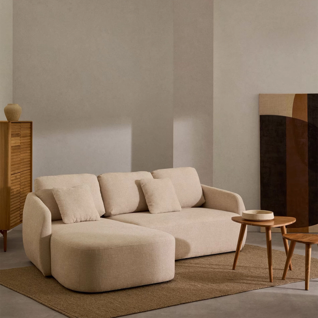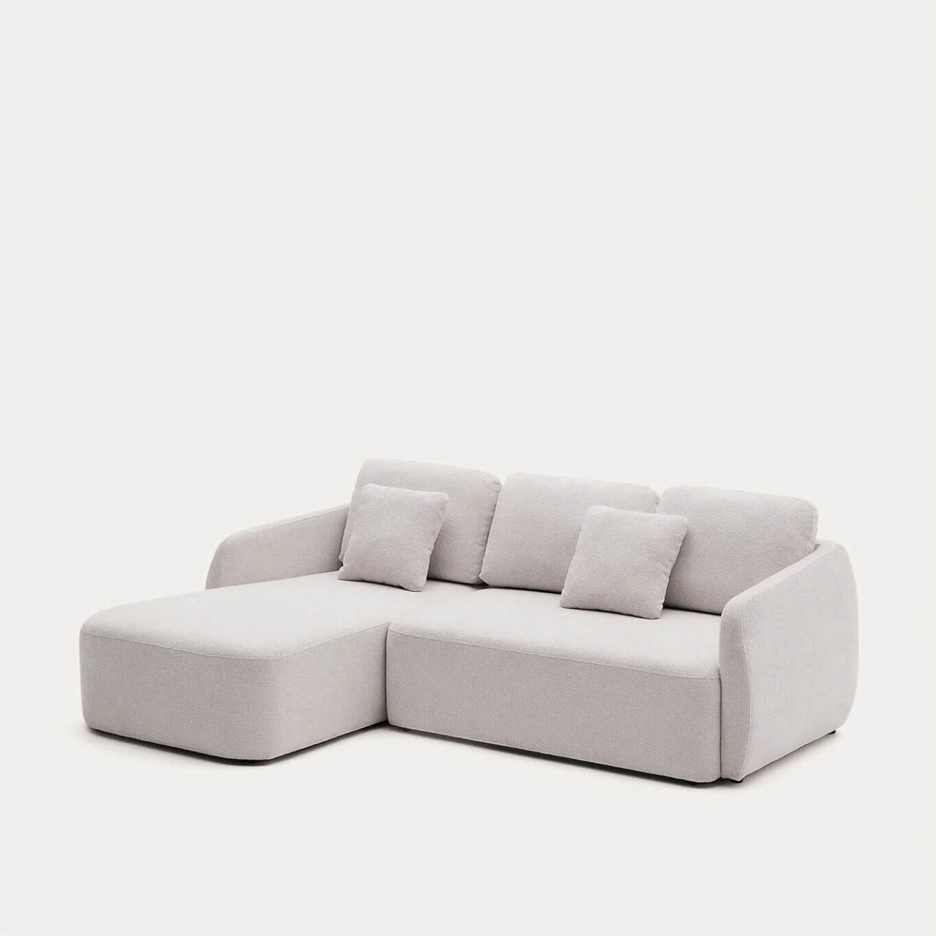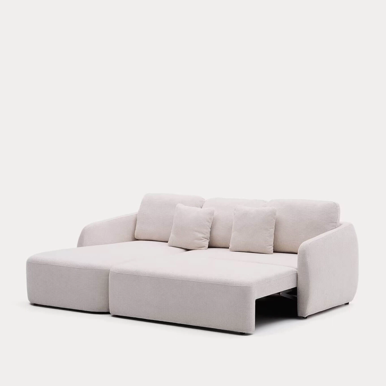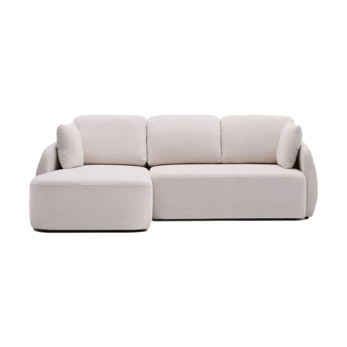 Canapé lit LAIRA 3 places avec méridienne gauche Chenille Ecrue KAVE HOME