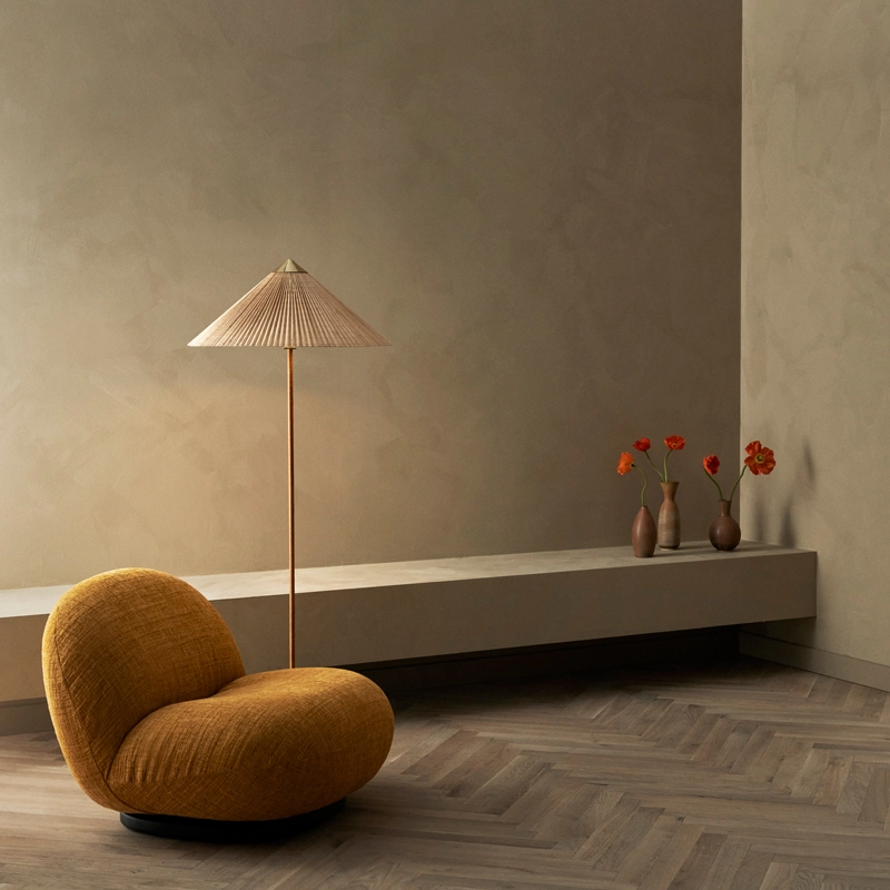 Développé à l’origine pour l’hôtel Aulanko en 1935, le lampadaire 9602 est une des créations les plus célèbres de Paavo Tynell. Gubi réédite ce lampadaire en 2018, également connu sous le nom de "chapeau chinois".