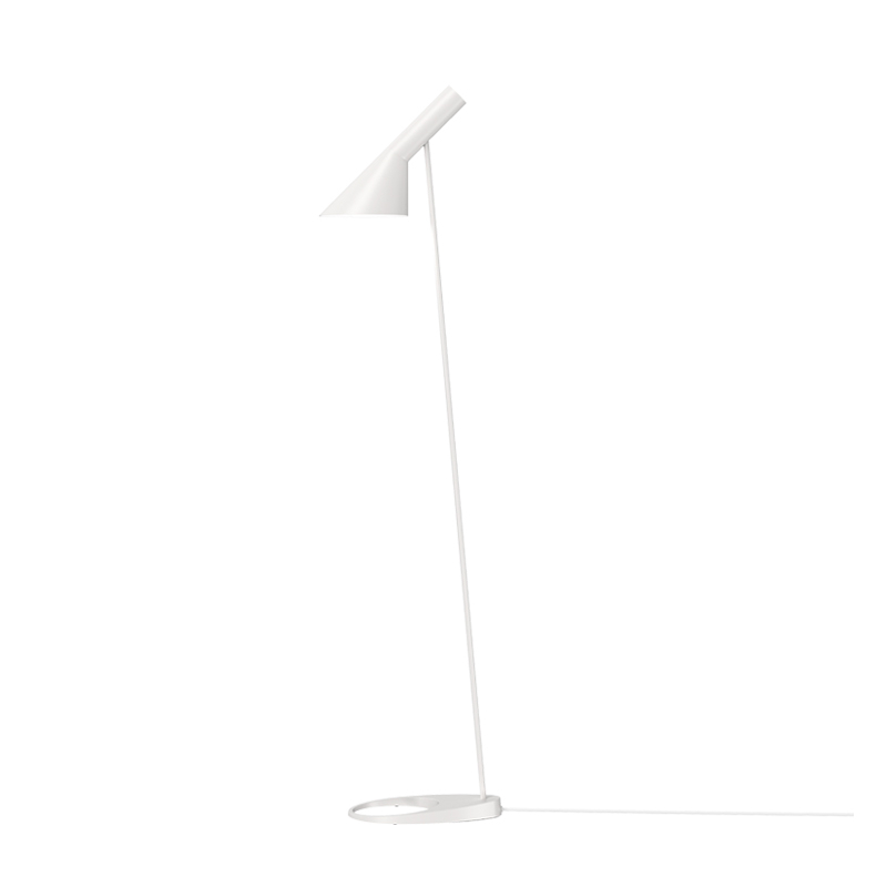 Dessinés par Arne Jacobsen et édités par Louis Poulsen en 1960 pour le SAS Royal Hôtel à Copenhague (Radisson Blu), les luminaires AJ faisaient partie, à l’origine, du concept de design complet créé pour l'Hôtel. Arne Jacobsen a non seulement dessiné les plans de l’hôtel, mais aussi imaginé dans les moindres détails la décoration intérieures de ce dernier. Bon nombre de produits dessinés à cette occasion sont aujourd'hui des icones du design, comme les fauteuils Egg et Swan. Les lampes AJ ont obtenu également une renommée mondiale. Le lampadaire AJ Floor est caractérisé par la forme asymétrique particulière de son abat-jour orientable. L’orifice dans son socle souligne l’élégance et la légèreté du design. Edités par Louis Poulsen et disponibles en lampe de table et en lampadaire, les luminaires AJ émettent une lumière dirigée vers le bas. L'angle de l'abat-jour peut être modifié afin d'optimiser l'éclairage. Les luminaires AJ de Louis Poulsen restent au fils du temps des classiques modernes dans le domaine des luminaires design. L'intérieur de l'abat-jour est peint en blanc afin de rendre la lumière plus douce et confortable. Le AJ Floor est disponible en trois couleurs : blanc, noir et graphite.