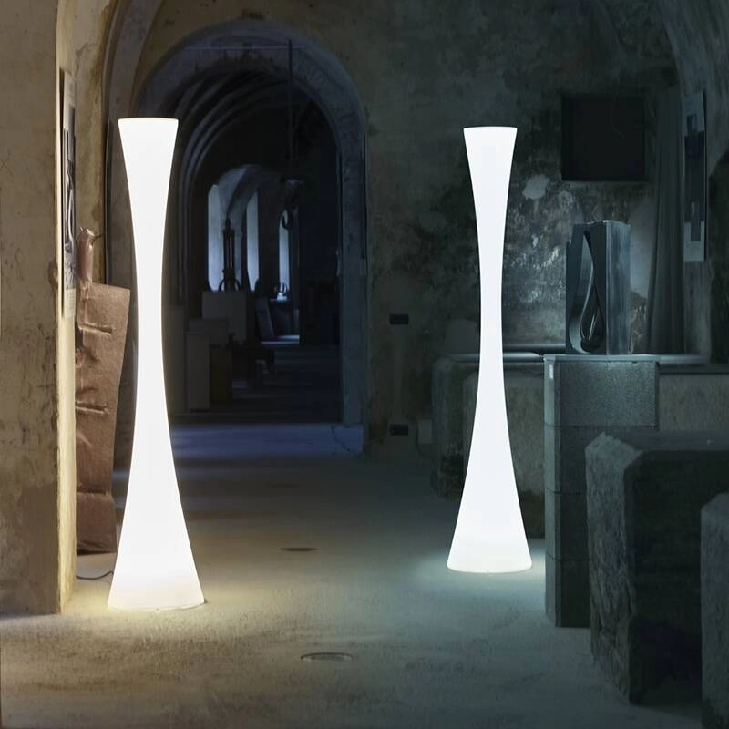 Biconica Pol est composé d’un pied avec diffuseur intégré, d’une enveloppe en polyéthylène blanc moulé par rotation, et d’un variateur de luminosité.
