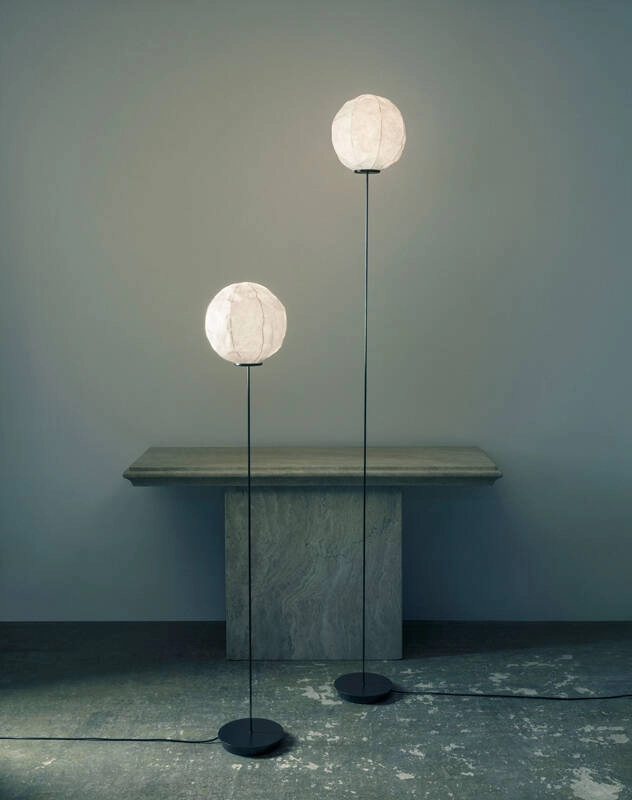 Conçu par le designer Suisse Dimitri Bähler pour la marque Established & sons, Cho est un lampadaire poétique dont le design a été rendu possible grâce l’utilisation de technologies de pointe. Il combine un diffuseur en papier traditionnel japonais et une tige en carbone incroyablement fine. Le globe en papier froissé crée une lumière diffuse chaleureuse, dont l’intensité peut être ajustée grâce à un variateur. La tige en carbone de six millimètres de diamètre est fixée sur une base lestée, qui permet de donner à l’ensemble une apparence particulièrement légère. La haute tige se balance doucement lorsque l’on touche la lampe, apportant un aspect ludique à la simplicité apparente de Cho. Cette lampe Established & Sons est disponible en deux hauteurs et deux diamètres différents.