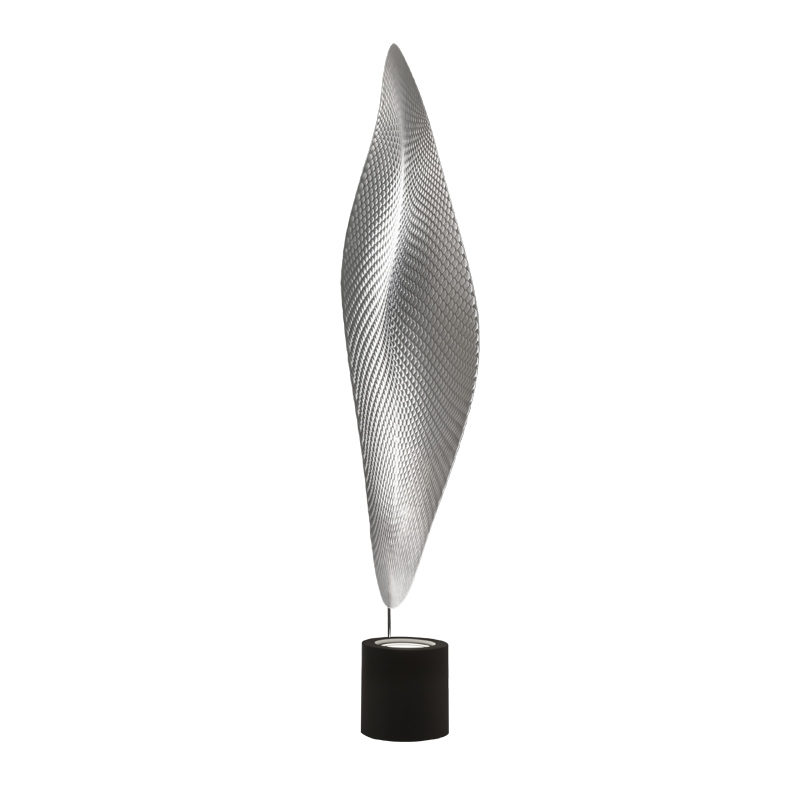 Cosmic Leaf est une création de Ross Lovegrove pour Artemide. La lumière, dans la base en métal du lampadaire est orientée vers le haut. D'inspiration végétale, le diffuseur en méthacrylate tressé produit une lumière diffuse. Par sa forme et ses reliefs, cette feuille cosmique( d'où elle tire son nom Cosmic Leaf , accroche la lumière de façon étonnante. A la fois gracieux et imposant par sa taille, ce lampadaire s'intègre parfaitement dans un intérieur pour créer une ambiance douce et poétique dans votre salon ou dans une entrée.
