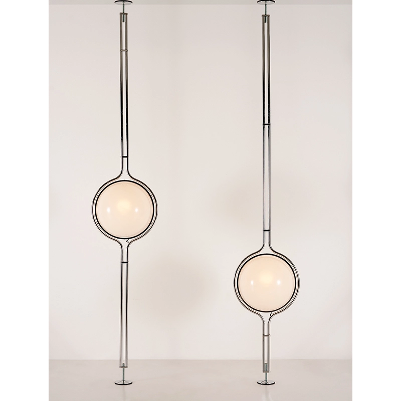 Dessinée en 1972 par Jean-Pierre Garrault et Henri Delord et rééditée par Tacchini, la lampe Dana se présente sous la forme d'une sphère lumineuse pratiquement suspendue dans le temps et l’espace. Sa structure métallique est séduisante grâce à sa simplicité et à l’audace de sa construction. Entre suspension et lampadaire, Dana est une pièce intemporelle, qui possède une forte personnalité. Cette lampe s'inspire d’un voyage au Japon, pendant lequel les deux designers ont vu se lever la pleine lune et passer derrière le Mont Fujiyama. Disponible en deux versions, la lampe Dana Tacchini se fixe entre le sol et le plafond grâce à sa hauteur réglable.