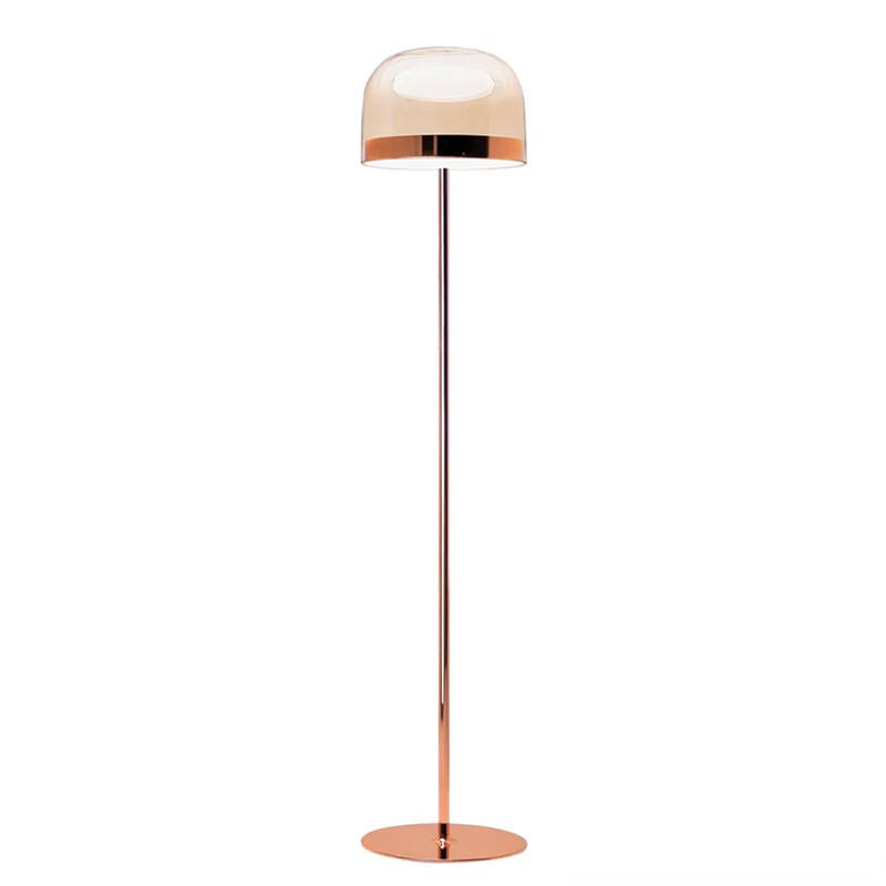 Equatore est une réinterprétation contemporaine de la lampe classique avec un abat-jour en verre. Alors que l'abat-jour traditionnel sert à contenir la source de lumière à l'intérieur, dans cette famille de lampes, l'abat-jour est paradoxalement vide, la lumière étant générée par deux disques lumineux placés à l'intérieur d'une bande métallique centrale, visible sur l'abat-jour, qui évoque la ligne de l'équateur. La lumière produite par les Led, grâce à des écrans internes disposés en couches, est distribuée régulièrement sur la surface des disques, les éclairant comme par magie. Le disque inférieur dirige la lumière vers le bas, le disque supérieur illumine la cloche en verre pour une lumière douce et diffuse. Editée par