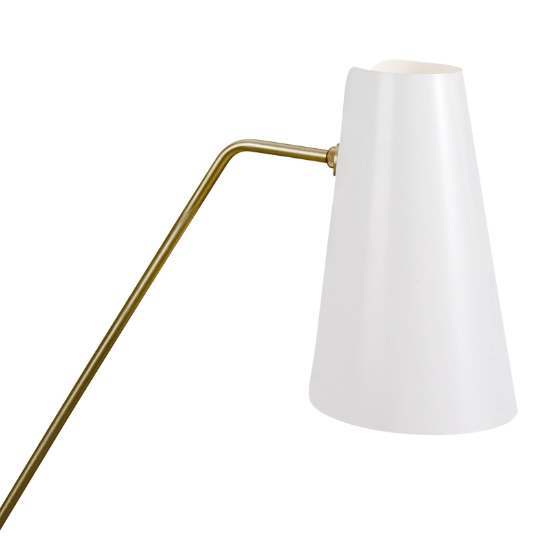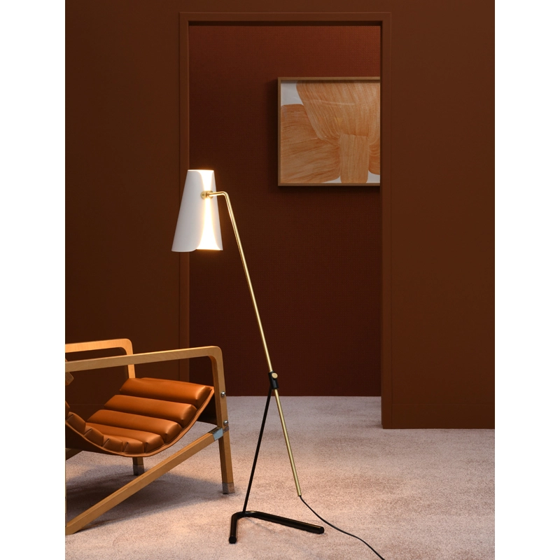 G21 est une liseuse parfaitement adaptée à un éclairage d’appoint, précis et intime. Ce modèle, dessiné en 1951 par Pierre Guariche, se compose d’un abat-jour en métal qui protège le regard de la source de lumière et oriente le flux lumineux. Le mat en laiton est orientable avec une tige coulissante qui permet d’en régler la hauteur selon votre confort.