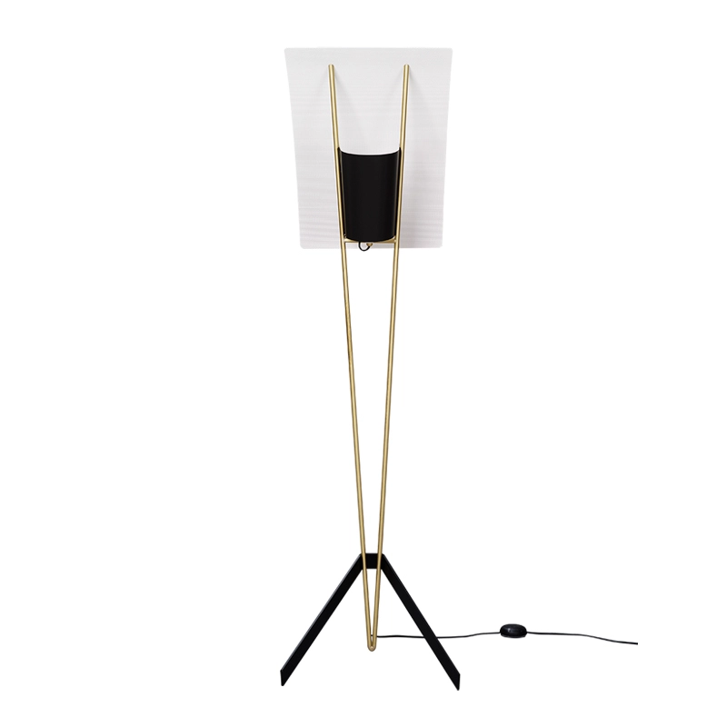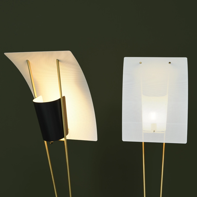 Le « cerf-volant » : tel est le nom que le designer Pierre Guariche lui-même donnait à ce lampadaire saisissant, dessiné en 1958. La voile en tôle perforée du