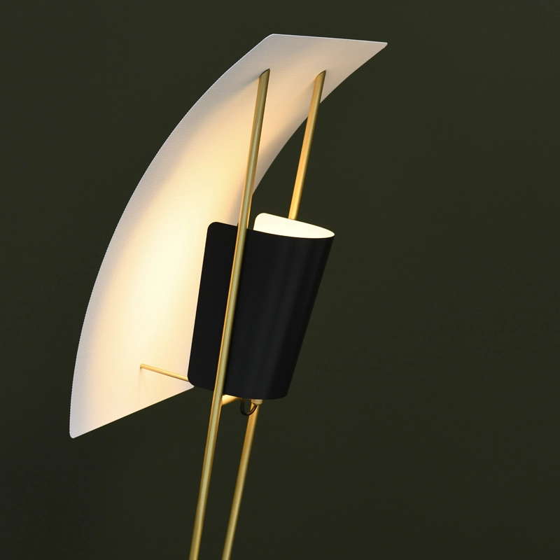 luminaire G30, à l’image d’une voile de bateau, invite le regard à l’évasion. Aux côtés d’un mat en laiton, pied et réflecteur se déclinent en métal noble noir ou blanc pour un univers monochrome ou contrasté.