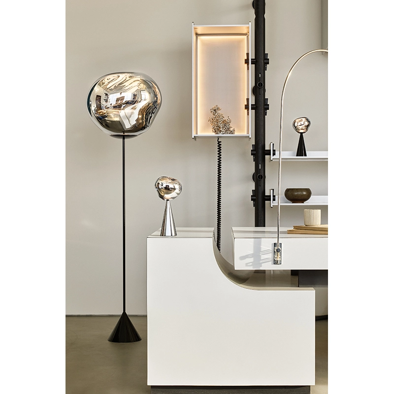 Le lampadaire Melt Cone Slim, conçu par Tom Dixon, évoque une fusion artistique du verre en train de fondre et les paysages galactiques. < ... En savoir plus