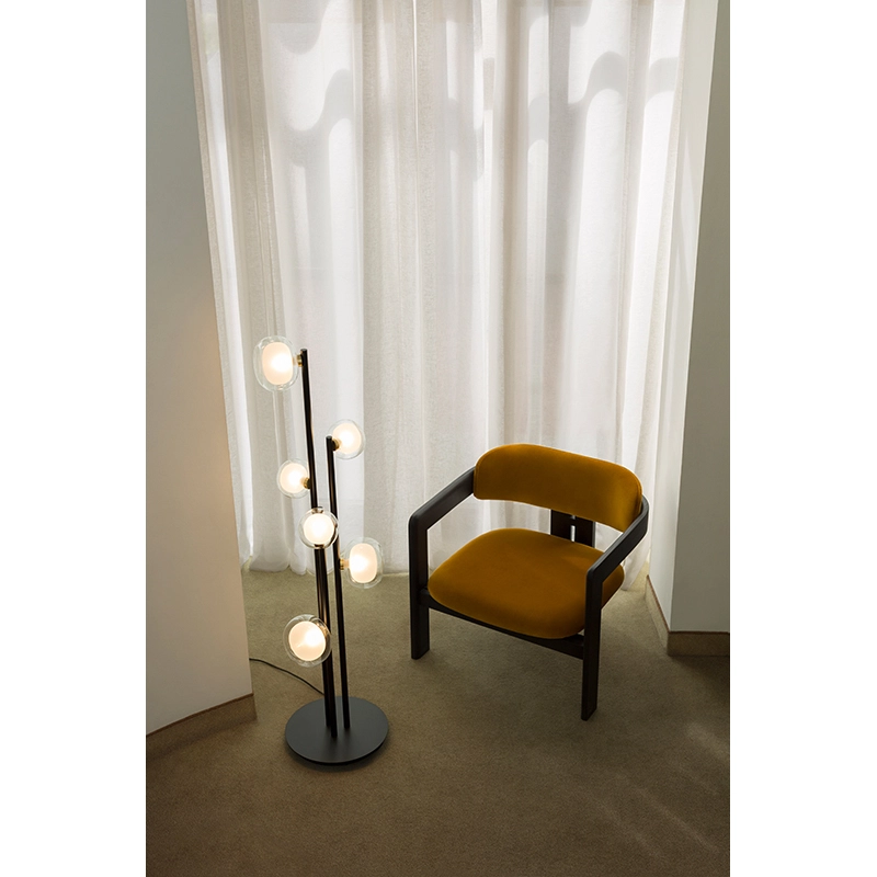 S'inspirant du design des luminaires des années 50, les luminaires de la collection Nabila de Tooy incarnent l'élégance et la sophistication, apportant une touche de raffinement à n'importe quel espace. Le lampadaire Nabila 552.66 se distingue par ses globes lumineux en verre borosilicate à double paroi, ainsi que par sa structure métallique revêtue de poudre époxy, agrémentée de détails en laiton brossé ou en chrome noir. Alliant le luxe à la sobriété, le lampadaire Nabila 552.66 incarne une véritable élégance en un seul élément. Avec NabilaTooy propose une large gamme de luminaires allant des somptueux lustres disponibles en tailles différentes aux versions plus petites conçues pour les tables de nuit, les lampadaires et les appliques murales.