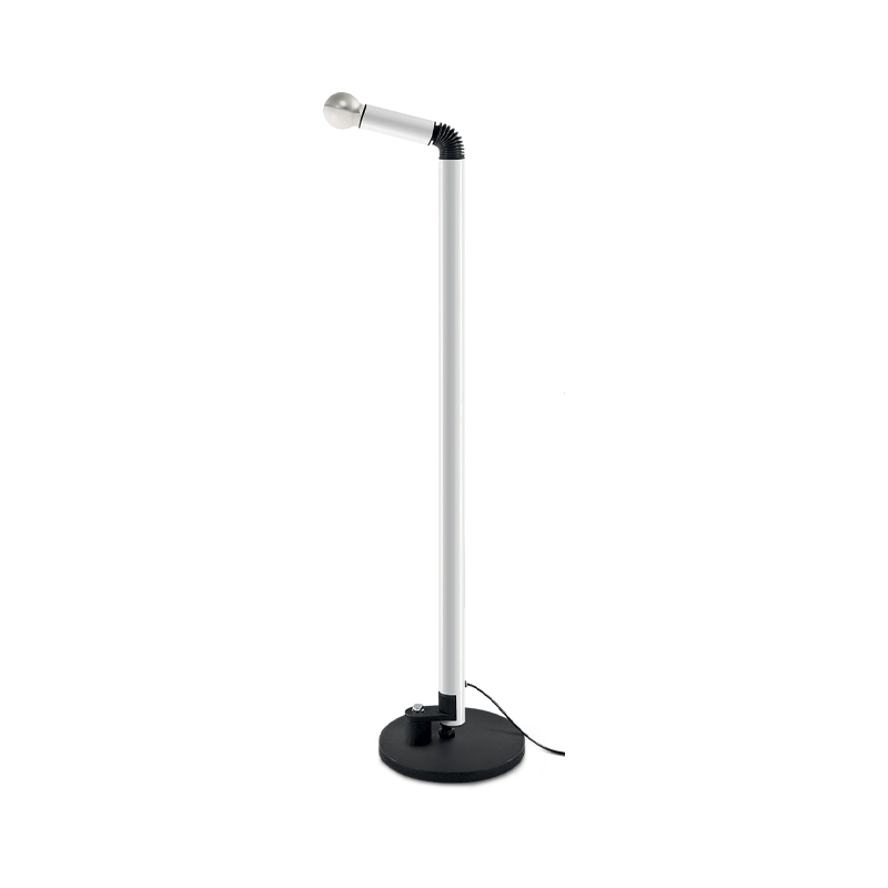 La collection de luminaires Periscopio éditée par Stilnovo a été conçue en pleine « ère spatiale ». Le caoutchouc souple qui recouvre l'articulation rappelle les joints des combinaisons des astronautes. Le système d'articulation et de rotation du bras permet d'ajuster Periscopio dans pratiquement n'importe quelle position. La source LED spéciale, dont la moitié est recouverte d'une surface argentée, évite les éblouissements. Les luminaires Periscopio sont disponibles en lampe à poser et en deux tailles de lampadaires.