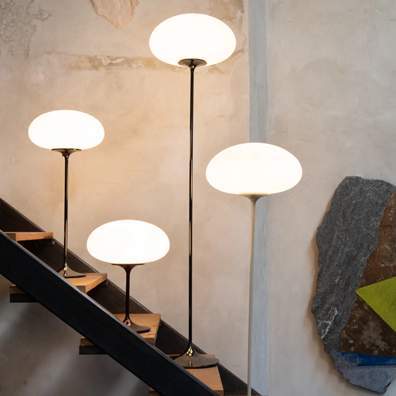 Créée en 1962 par le designer Bill Curry, Stemlite représentait une nouvelle typologie de luminaires, qui remplaçait la traditionnelle lampe composée d’un pied et d’un abat-jour, par une pièce tout en un, comprenant des modules interchangeables. Aujourd’hui rééditée par Gubi, près d’un demi-siècle plus tard, la collection, fidèle au design original, comprend deux lampes de table, deux lampadaires et une suspension, dans une palette de couleurs à la fois contemporaines et authentiques. Avec un passé dans l’aérospatial, Bill Curry s’est emparé de l’esprit de l’Amérique des années 60 et 70, depuis la conquête de l’espace jusqu’aux tendances pop, quand il monte son propre studio à Los Angeles en 1962, Design Line. Il imagine alors de nouvelles normes, rendues possibles par les technologies émergentes, et conçoit des collections de luminaires innovantes, audacieuses et colorées adaptées à une nouvelle ère. La collection Stemlite s’inspire des tiges de fleurs, à la fois minces et robustes. Ainsi, le luminaire est doté d’une base en métal moulé, évoquant une tige de tulipe, sur laquelle est montée un globe en verre soufflé et d’un interrupteur très simple de forme cylindrique. Grâce à sa cohérence visuelle, la collection Stemlite permet de combiner les différents modèles de luminaires dans les espaces résidentiels, collectifs ou commerciaux. La forme organique des luminaires s’intègre aussi bien dans des intérieurs audacieux et modernes, que dans des environnements plus classiques.