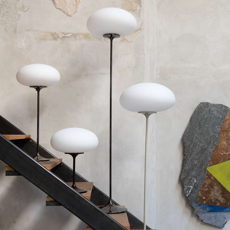 Créée en 1962 par le designer Bill Curry, Stemlite représentait une nouvelle typologie de luminaires, qui remplaçait la traditionnelle lampe composée d’un pied et d’un abat-jour, par une pièce tout en un, comprenant des modules interchangeables. Aujourd’hui rééditée par Gubi, près d’un demi-siècle plus tard, la collection, fidèle au design original, comprend deux lampes de table, deux lampadaires et une suspension, dans une palette de couleurs à la fois contemporaines et authentiques. Avec un passé dans l’aérospatial, Bill Curry s’est emparé de l’esprit de l’Amérique des années 60 et 70, depuis la conquête de l’espace jusqu’aux tendances pop, quand il monte son propre studio à Los Angeles en 1962, Design Line. Il imagine alors de nouvelles normes, rendues possibles par les technologies émergentes, et conçoit des collections de luminaires innovantes, audacieuses et colorées adaptées à une nouvelle ère. La collection Stemlite s’inspire des tiges de fleurs, à la fois minces et robustes. Ainsi, le luminaire est doté d’une base en métal moulé, évoquant une tige de tulipe, sur laquelle est montée un globe en verre soufflé et d’un interrupteur très simple de forme cylindrique. Grâce à sa cohérence visuelle, la collection Stemlite permet de combiner les différents modèles de luminaires dans les espaces résidentiels, collectifs ou commerciaux. La forme organique des luminaires s’intègre aussi bien dans des intérieurs audacieux et modernes, que dans des environnements plus classiques.