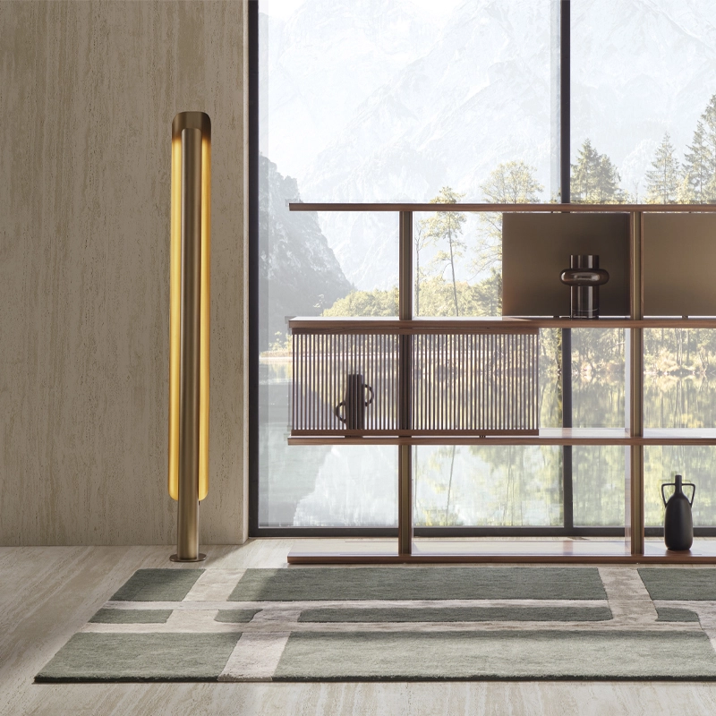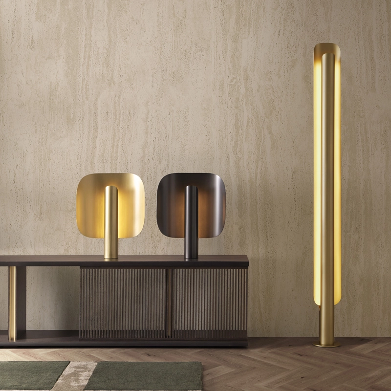 La structure de Stockholm se compose d’une source lumineuse verticale dissimulée dans un cylindre métallique, et d’un abat-jour incurvé. Cette disposition permet au luminaire d’émette un flux chaleureux, discret et tamisé, amplifié par les finitions sophistiquées du métal.