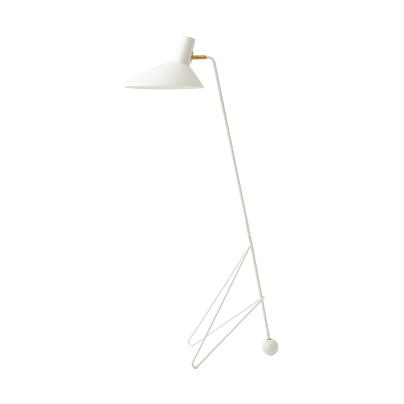 Dessiné par Hvidt & Mølgaard, Tripod est un lampadaire minimaliste, réalisé en métal laqué avec des détails en laiton. Considérés comme des maîtres du design danois des années 50, leurs créations apportent souvent une touche sculpturale à l’espace où elles se trouvent. Le lampadaire Tripod ne fait pas exception. Nommé d’après la composition de sa base si particulière, le luminaire est doté de lignes simples et précises qui caractérisent parfaitement l’esthétique des designers. Le pied comporte une sphère lourde qui fait office de contrepoids et permet l’équilibre globale de la lampe. Les premiers croquis du lampadaire Tripod date de 1953, pourtant la lampe n’avait jamais trouvé le chemin de la production. Ainsi, And Tradition édite pour la première ce luminaire unique et intemporel.