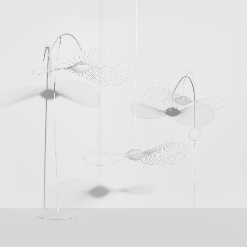 Petite Friture et Constance Guisset, duo complice et exigeant depuis le début, signent un nouveau chapitre de la suspension Vertigo avec Vertigo Nova : des choix techniques audacieux pour une création sophistiquée. Une collection complète de pièces fortes, qui se déclinent en lampadaire, suspension et lampe murale, en noir ou blanc. La grande nappe graphique repose sur un verre soufflé, libérant un éclairage d’une grande douceur et dimmable avec technologie LED intégrée. Vertigo Nova frémit au gré des vibrations de l’air grâce à une structure sinusoïdale en fibre de verre sous-tendue par des rubans assemblés à la main par des artisans qualifiés en France. Vertigo Nova signe l’équilibre parfait entre technologie et élégance. Cette lampe sculpture du nom d’une étoile intrigue par sa ligne et son mouvement, séduit par son allure. « Vertigo Nova est née du désir de travailler la lumière de l’objet pour l’adoucir et la graduer. La partie technique est désormais aspirée dans un verre sablé mystérieux.  La fonction de la lampe est sublimée pour ne laisser apparaître que l’essentiel, une nappe volante entre deux eaux, légère et délicate. »  Constance Guisset. Vertigo Nova signe l’équilibre parfait entre technologie et élégance. Une lampe design singulière propice à la rêverie, incarnant la libre garde et l’exigence défendues par Petite Friture.