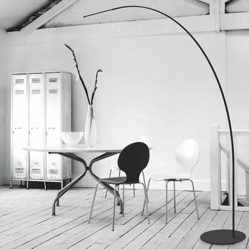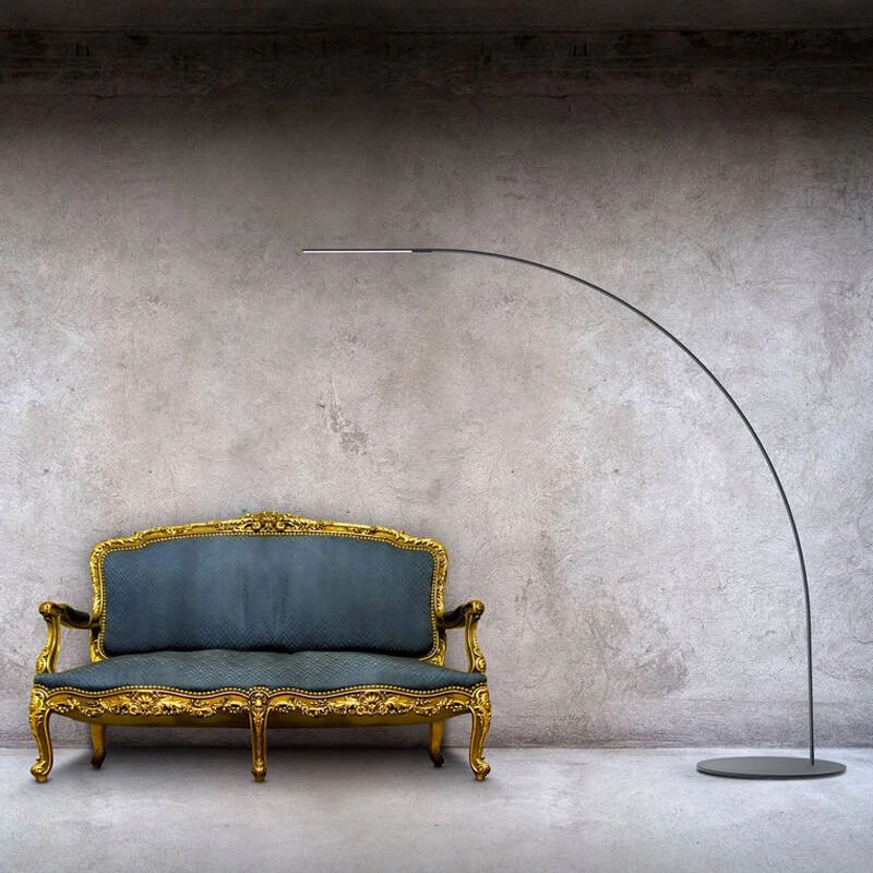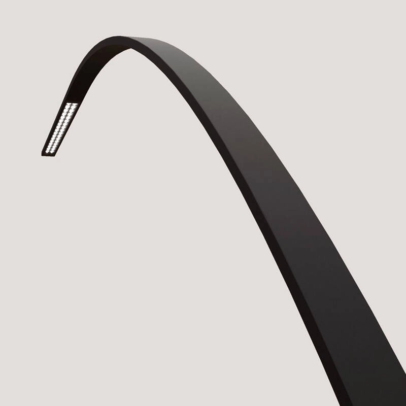 Yumi est à la fois délicat et fort : un signe essentiel qui répond à une structure résistante et légère. 170 LED sont discrètement encastrées dans la structure de la lampe, ce qui minimise l'encombrement de l'espace par la lumière et renforce encore la ligne continue du design de l'arc. Le choix de matériaux résistants aux hautes températures a permis de dissimuler entièrement le câblage à l'intérieur de la potence pendant le processus de production. Le lampadaire