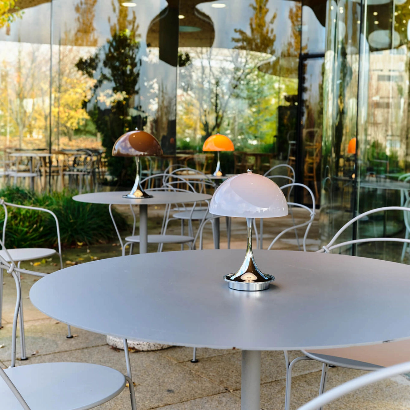 Ce modèle emblématique de 250 mm, édité par Louis Poulsen, est une réplique fidèle à échelle réduite de Panthella pouvant être utilisée n’importe où, car elle ne dépend pas d’une prise de courant. Dans cette version, la lampe Panthella 250 Portable se recharge par cordon USB. Elle est ainsi facile à transporter pour créer une agréable atmosphère luxueuse sur votre terrasse, à la terrasse d’un restaurant, ou dans n’importe quel endroit sans accès au réseau électrique.