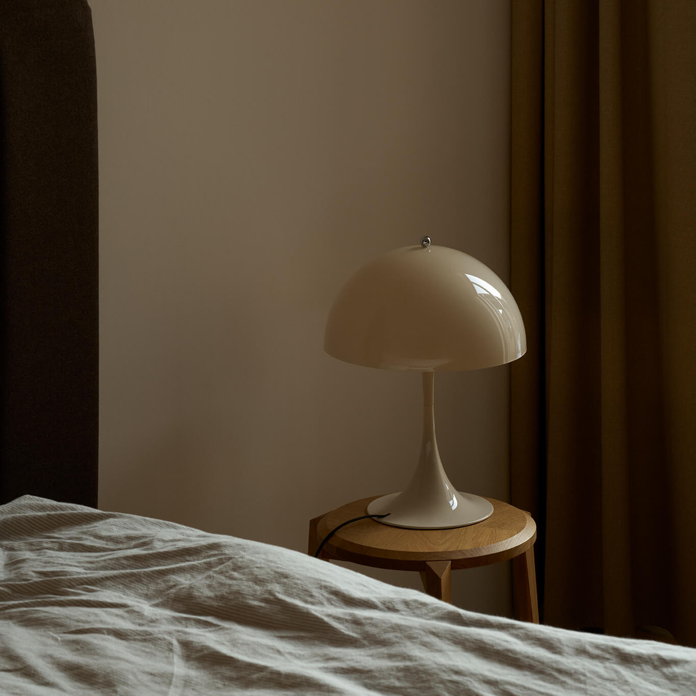 lampe à poser Panthella 320 se distingue comme l’un des modèles les plus emblématiques du designer, dont la forme organique reflète la plus douce des lumières.