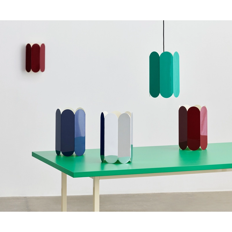 Arcs est une série d’objets et de luminaires créés par le duo Muller Van Severen pour la marque Hay. Composé d’une répétition d’arcs verticaux qui forment une silhouette élégante à multiples facettes, l’abat-jour Arcs crée un volume spatial qui joue avec la lumière et la forme. Cet abat-jour design peut être utilisé en lampe de table ou en suspension. Réalisé en acier, Arcs se décline en plusieurs couleurs ou avec une finition miroir. Arcs est également disponible en version applique.