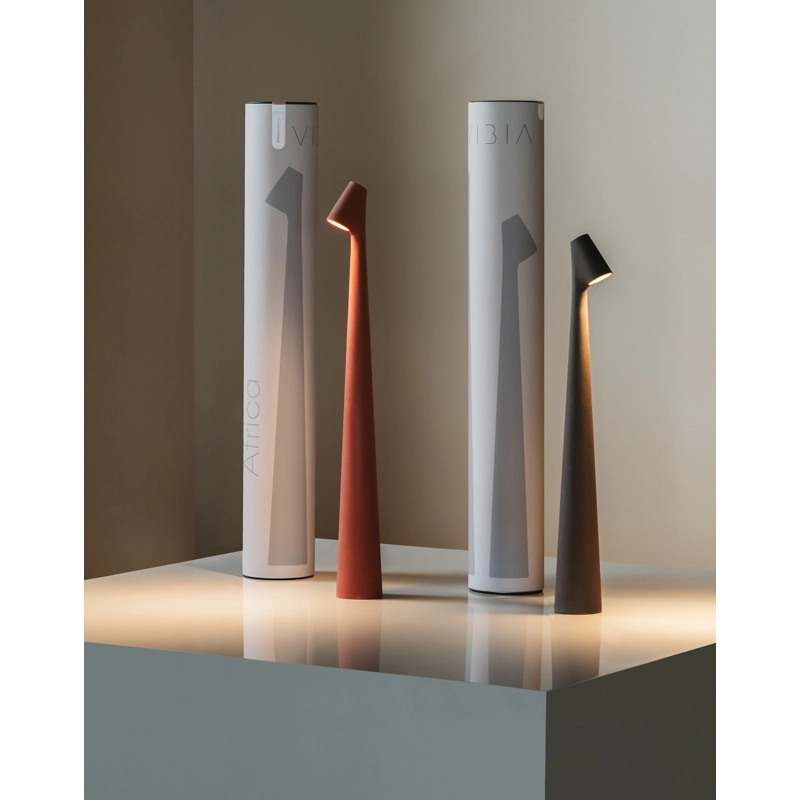 Signée Francisco Gomez Paz pour Vibia, la collection Africa allie sens culturel, richesse des formes et des matériaux, et hautes compétences en matière d’éclairage. Avec sa tige conique élancée qui culmine en une tête élégante, ce luminaire vous invite à tendre la main pour vous en saisir. Objet de désir avant toute chose, cette lampe portable se distingue par la finesse de son esthétique, qui tisse un lien indéniable avec des pratiques artistiques ancestrales. Poétique et épurée, Africa explore la beauté, la fonctionnalité et l’essence de l’humanité. Sa silhouette crée un effet saisissant dans tout type d’espace, qu’il s’agisse d’une bibliothèque publique, d’une entrée d’hôtel ou d’un projet résidentiel. Lorsque plusieurs luminaires sont regroupés, le design s’anime d’une nouvelle valeur de composition, quand une figure individuelle devient paire, famille, communauté.  Africa de Vibia s’adapte à grande variété d’activités et d’utilisations : mettre en valeur un coin oublié, diffuser une lueur douce lors d’un repas romantique, ou d’éclairer un espace de réunion. Idéal pour un éclairage direct, ce luminaire contribue à créer une ambiance confortable dans tout espace de travail. Façonnée à partir d’une seule pièce d’aluminium pur, un contrepoids à la base de la lampe Africa Vibia vient équilibrer la densité de sa tige et de sa tête, assurant ainsi une belle stabilité tout en ménageant l’élégance d’un cou allongé. Contrôlée par un simple bouton poussoir situé sur la tête, sa source lumineuse LED variable offre trois niveaux d’intensité, pour s’adapter aux besoins de son utilisateur. Pour recharger le luminaire, l’axe se glisse aisément dans une base en aluminium magnétisé, prolongement parfait de son expression sculpturale.
