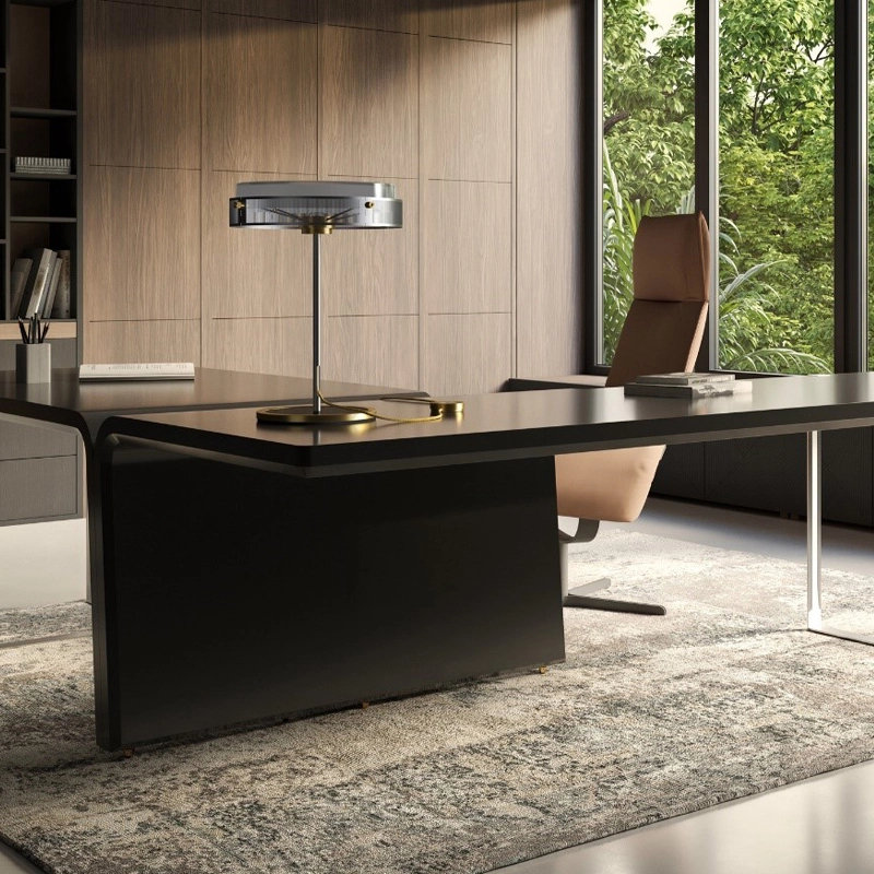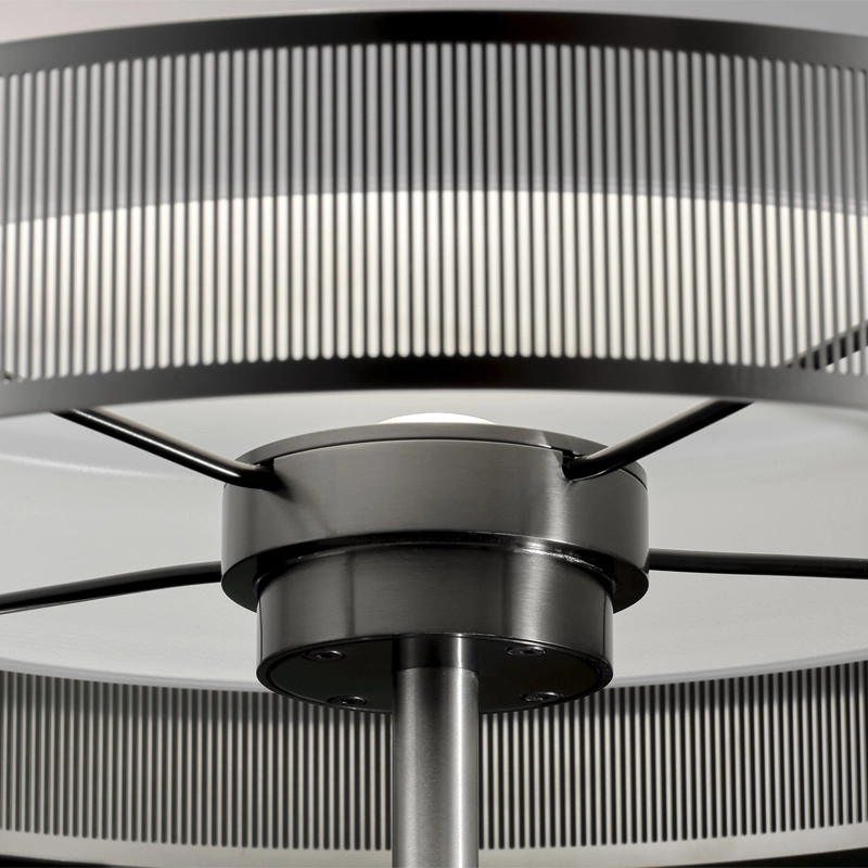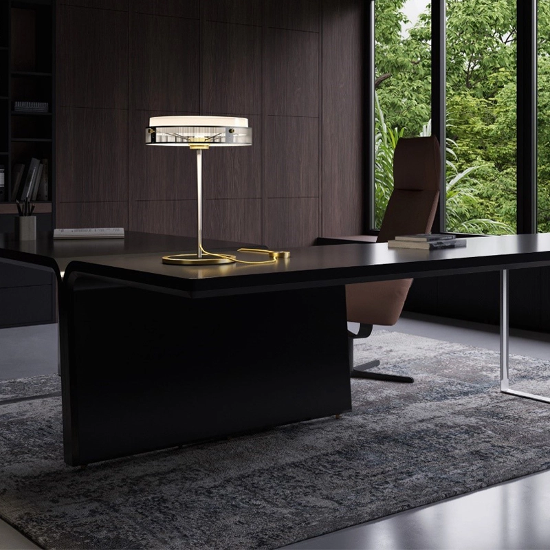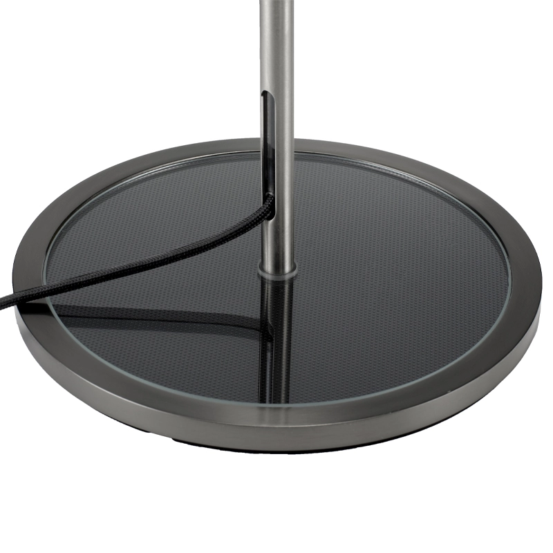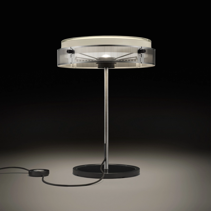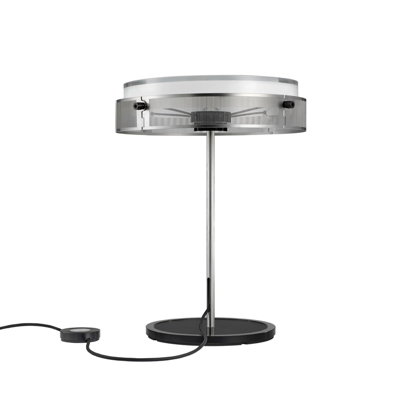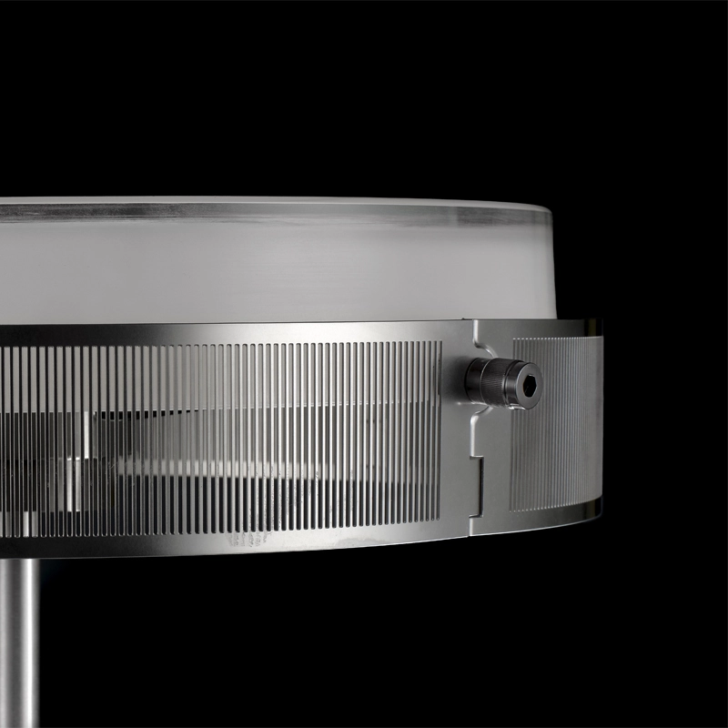 La lampe à poser Anima créée par Jean-Michel Wilmotte est le fruit de la première collaboration entre le célèbre architecte et la marque Lumina, et se présente comme une véritable réinterprétation de la lampe avec abat-jour.  Anima se compose d’un corps de lampe classique en aluminium, d’une source lumineuse masquée par un diffuseur en verre opalin qui émet une lumière douce et agréable, et d’une structure externe composée de 4 pièces en acier photo-découpé.  Cet ensemble est maintenu par une tige en acier inoxydable brossé qui abrite et laisse apparaître le câble d’alimentation en tissu, dont le coloris s’accorde à la finition métallique de la lampe.  La lampe Anima repose sur une base en verre transparent délimitée par un anneau anodisé, et équipée d’un variateur d’intensité. Le luminaire Anima s’annonce comme une revisite particulièrement contemporaine de la lampe avec abat-jour, sans exclure pour autant sa fonctionnalité. Anima se prête à la décoration d’intérieurs classiques et modernes, aux ambiances marquées, mais aussi aux petits espaces comme les bureaux, dont la lampe renforce le caractère.