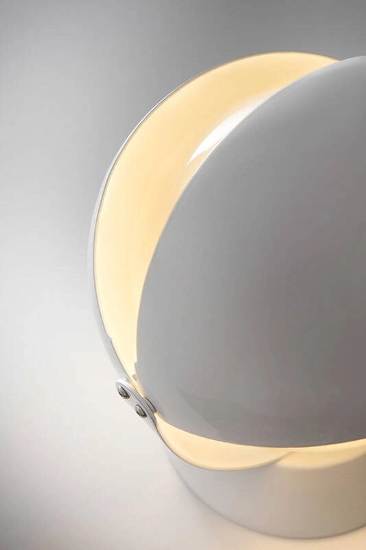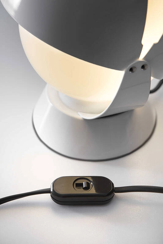 Editée une première fois par Stilnovo en 1965, Buonanotte fait partie des icones du passé de la maison milanaise rééditées pour illuminer les intérieurs d'aujourd'hui. Buonanotte est une lampe à poser amusante dont la lumière peut être réglée en faisant tourner deux quarts métalliques qui, déplacés librement sur le diffuseur sphérique, contrôlent le faisceau lumineux. D’un simple geste, il change l’atmosphère : ouverte pour une bonne lecture ou fermée et diffuse, complice des rêves. La lampe Buonanotte est constituée d'un corps en métal et d'un diffuseur en verre soufflé triplex. Cette lampe de la maison italienne Stilnovo est disponible en blanc, bleu, jaune et rouge.