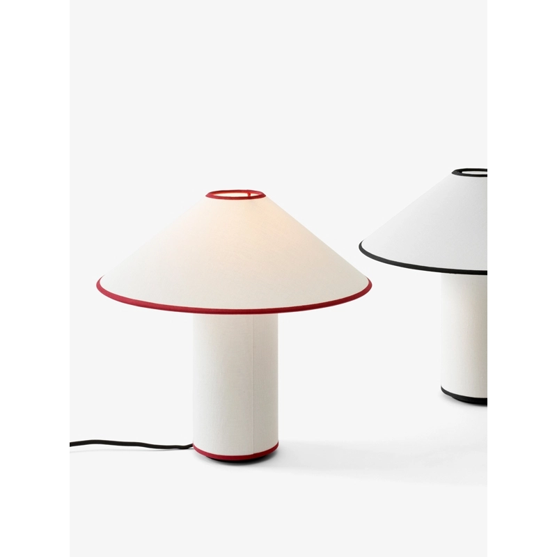 Disponible dans deux combinaisons de couleurs sophistiquées, la lampe Colette joue sur les émotions et la nostalgie avec son style Art-Deco. Nommée d’après la célèbre auteure française Colette, la lampe And Tradition est dotée d’une esthétique d’avant-garde. Présentant un diffuseur et une base entièrement recouverts dans un mélange de coton et de lin, cette lampe est élégante, douce et ludique. Après des recherches poussées, Colette a été créée par l’équipe de design And Tradition comme une interprétation moderne de la lampe classique. Originale, Colette est dotée d’un charme classique réhaussé par la bordure contrastante noire ou rouge qui souligne l’abat-jour et la base. Un variateur intégré permet de contrôler l’intensité lumineuse pour s’adapter à l’ambiance voulue, que ce soit dans le salon ou sur la table de chevet.