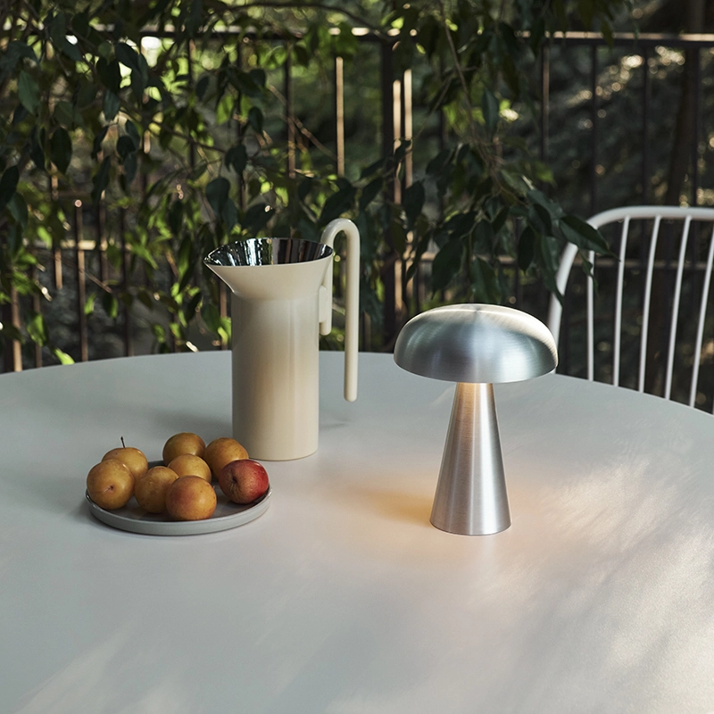 Associez l'éclairage à l'ambiance avec Como SC53, une lampe de table portable Space Copenhagen pour And Tradition. Réalisée à partir d'aluminium anodisé, la base robuste de Como se rétrécit vers un abat-jour légèrement incurvé en forme de champignon. La lampe Como SC53 est alimentée par batterie peut fonctionner pendant onze heures au réglage le plus élevé. La lampe Como SC53 est équipée d'un variateur d'intensité permettant un réglage sur trois niveaux lumineux, pour créer l'ambiance désirée. Elle se recharge facilement avec un câble USB magnétique. Pour les espaces collectifs, un chariot équipé de plateaux, pouvant recharger plusieurs lampes en même temps, peut être commander sur demande.
