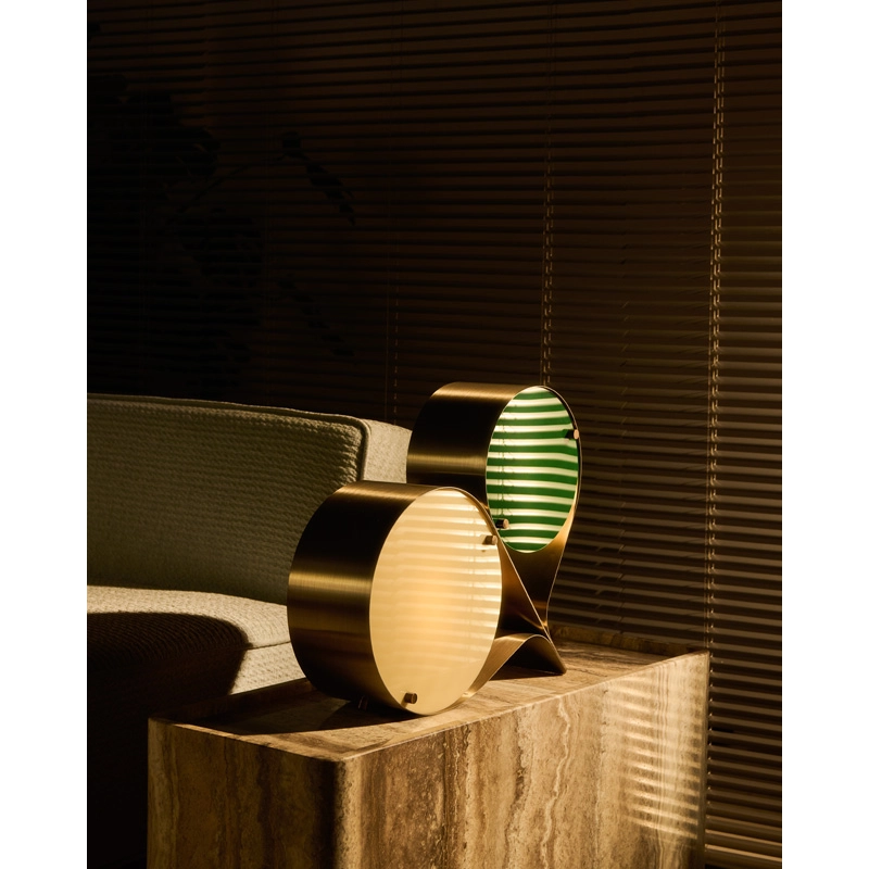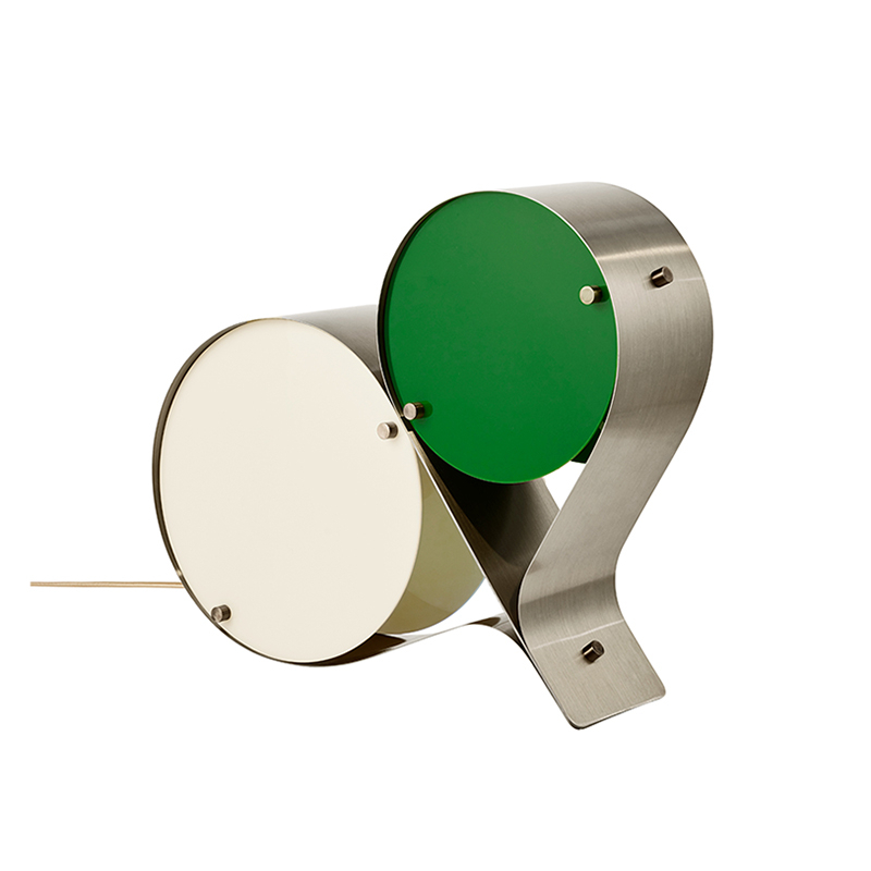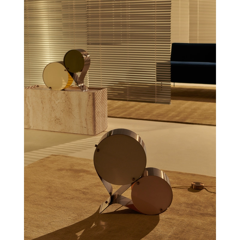 Coppia est une lampe de table sculpturale, conçue par Vibeke Fonnesberg Schmidt pour la marque Gubi. Avec deux disques de plexiglas, signature de Fonnesberg Schmidt, logés dans un boîtier métallique incurvé, cette lampe se démarque par son design à la fois industriel et élégant, fluide et géométrique. La lampe Coppia est suffisamment robuste pour être utilisée comme lampe de table ou lampe de sol, se déplaçant facilement du bureau au chevet du lit, de l'étagère au rebord de la fenêtre, selon les besoins.