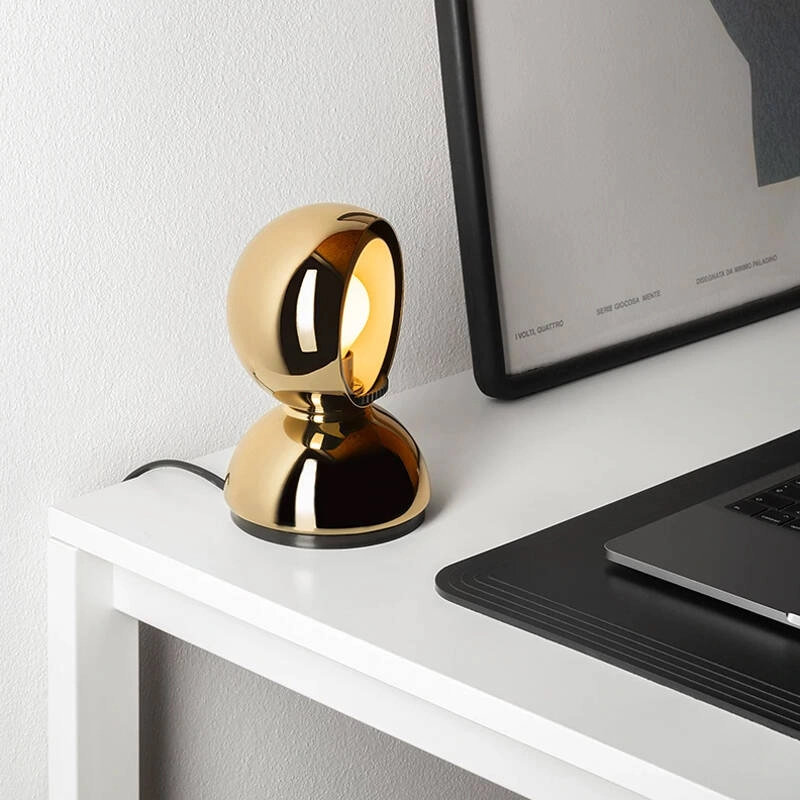 Eclisse est une petite lampe à poser conçue par Vico Magistretti pour la marque Artemide. Eclisse est un équilibre avant-gardiste entre forme et fonction, design et utilité. Le fondement du concept réside dans sa fonctionnalité de réglage de lumière grâce à sont abat jour intérieur rotatif qui "éclipse" la source lumineuse. En effet avec une coque extérieure fixe et une coque intérieure mobile, la lampe Eclisse peut fournir une lumière directe ou diffuse. La lampe à poser Eclisse PVD est disponible en noir, laiton, cuivre ou miroir.