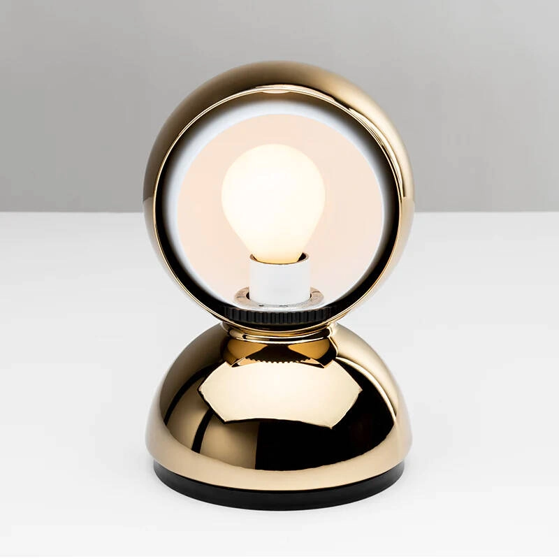 Eclisse est une petite lampe à poser conçue par Vico Magistretti pour la marque Artemide. Eclisse est un équilibre avant-gardiste entre forme et fonction, design et utilité. Le fondement du concept réside dans sa fonctionnalité de réglage de lumière grâce à sont abat jour intérieur rotatif qui "éclipse" la source lumineuse. En effet avec une coque extérieure fixe et une coque intérieure mobile, la lampe Eclisse peut fournir une lumière directe ou diffuse. La lampe à poser Eclisse PVD est disponible en noir, laiton, cuivre ou miroir.