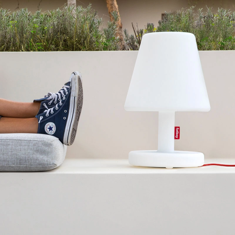 Edison The Petit et Edison The Grand. Cette lampe est aussi esthétique que robuste, grâce à un matériau de fabrication unique. Avec sa couleur blanche subtile, cette lampe de table design apportera sans aucun doute une valeur ajoutée à votre environnement, tant intérieur qu’extérieur. Contrôlez facilement votre lampe