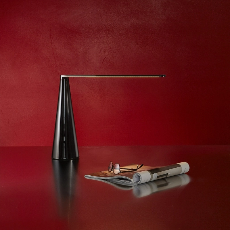 La lampe à poser Elica a été dessinée par Brian Sironi en 2009, et est éditée chez la maison de luminaires Martinelli Luce. Cette lampe de table pivotante concentre tout le charme et la maitrise du design italien dans une structure en aluminium peint, à la source lumineuse LED intégrée. Pour conserver l’intégrité de sa silhouette conique, Elica ne possède pas d’interrupteur : c’est en tournant son bras que l’on allume ou qu’on éteint la lampe. Outre la grande sophistication dont sa conception fait preuve, la lampe Elica de Martinelli Luce répond à toutes les exigences de la décoration intérieure moderne. Cette lampe complète parfaitement les décors de bureau, de salon, ou de chambre sur une table de chevet.