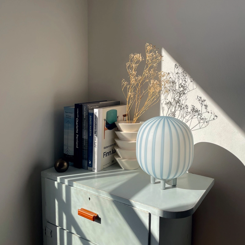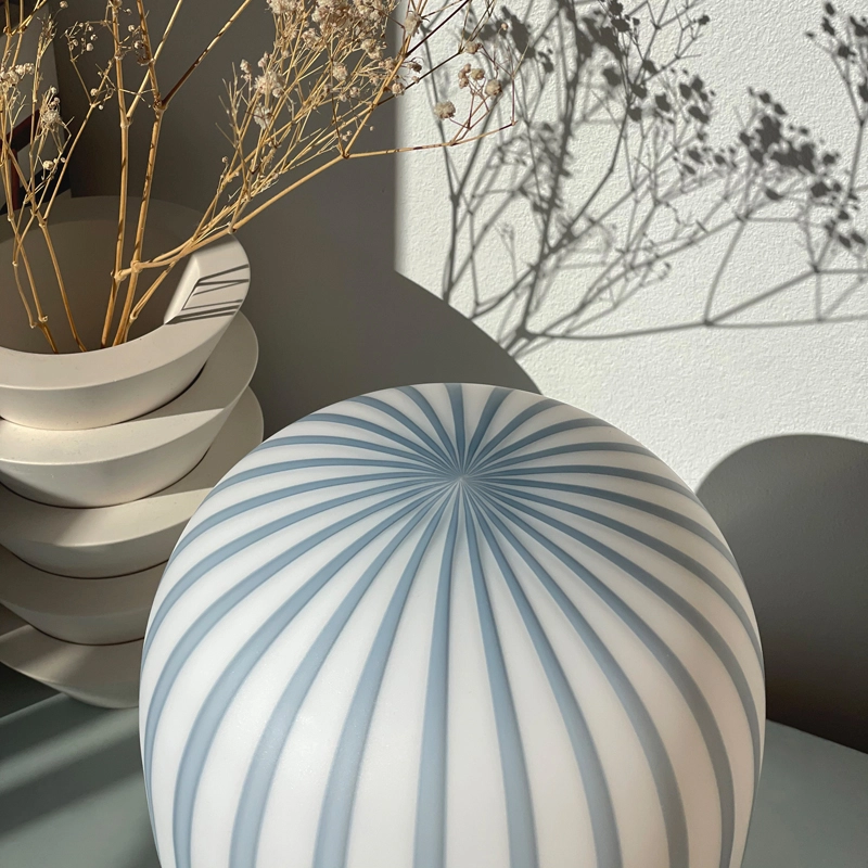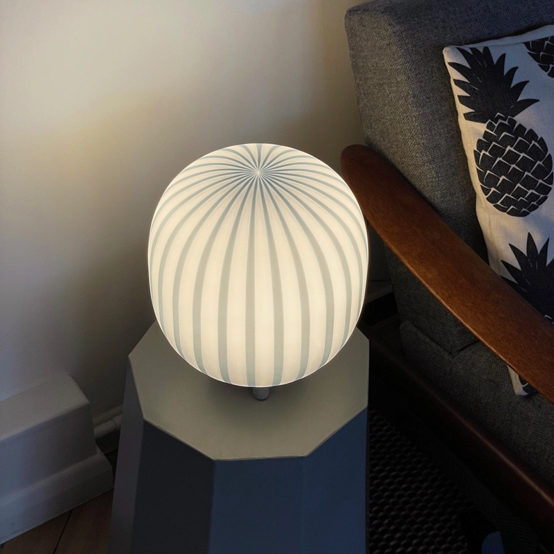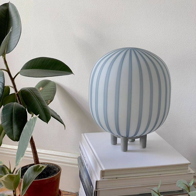 Dessinée par Sebastian Wrong pour Established & Sons, la collection de luminaires Filigrana exploite la maitrise et l’héritage du verre soufflé vénitien traditionnel. Cette série fusionne une technique du 16ème siècle venant de Murano avec une esthétique moderne, pour créer un luminaire hypnotisant, dont les rayures font penser à un sucre d’orge. Chaque luminaire Filigrana est unique, grâce au procédé artisanal utilisé. Le verre est soufflé à la bouche par des artisans hautement qualifiés. Disponible dans de nombreuses dimensions et plusieurs couleurs, Filigrana émet une lumière douce et diffuse. Introduite pour la première fois en 2018, cette lampe reconnaissable instantanément apporte une touche joyeuse et graphique dans tous types d’espaces. La lampe de table Filigrana est parfaite en lampe de chevet dans une chambre ou en luminaire d'ambiance dans un salon.