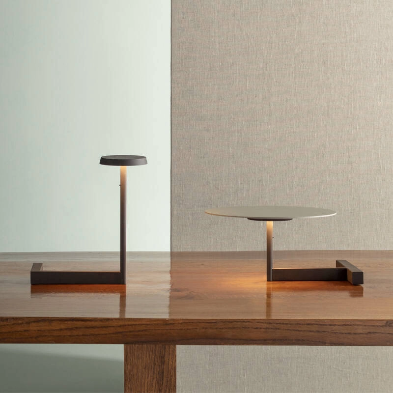 Conçue par Ichiro Iwasaki et éditée par Vibia, la collection Flat se compose de luminaires aux diffuseurs originaux, en forme de disque. Les lames métalliques horizontales de Flat réfléchissent la lumière sur leur surface, pour créer des strates d’éclairage indirect et s’intégrer à l’architecture environnante. D’un design délicat tout en étant de caractère graphique, Flat transmet la signature esthétique d’Ichiro Iwasaki, réputé pour son style sobre et abstrait. Sa forme minimaliste est optimale car chaque disque fuselé contient et dirige la lumière, paraissant ainsi éclairé de l’intérieur.  La version lampe à poser de Flat repose sur un pied angulaire qui tranche nettement avec la rondeur de son abat-jour, bien que les deux parties se complètent dans un équilibre parfaitement maitrisé. La collection de luminaires Flat embellit les sols, les tables et les plafonds grâce à ses disques individuels ou multiples. Grâce à sa maîtrise de la géométrie, les lignes épurées de Flat se fondent en parfaite harmonie pour conférer à l’espace une sensibilité apaisante et zen.