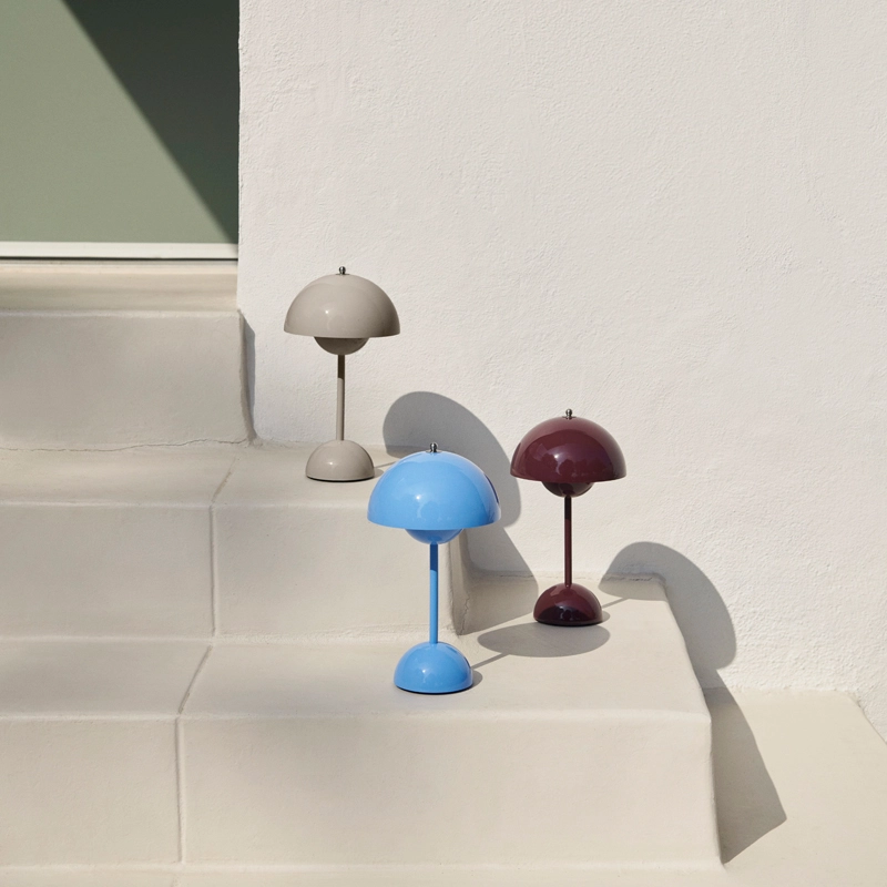En 1968 la révolte des étudiants à Paris, à Rome et aux Etats-Unis renversaient les vieilles valeurs trop sévères et engageaient la génération « Flower-Power » faite de paix, d'amour et d'harmonie. La même année, Stanley Kubrick imaginait le futur, l'an 2001, mettant en vedette la chaise Panton devenue un classique du design, et l'homme était sur le point de poser le pied sur la lune. Dans le monde du design, une suspension colorée et ludique fleurissait dans les restaurants, les expositions et bientôt dans nos maisons. La lampe FlowerPot, avec ses deux demi sphères face à face, présente un design intemporel et de qualité, édité par & Tradition. Avec un large choix de couleurs, la lampe à poser FlowerPot VP9 est très pratique grâce à son fonctionnement sur batterie. Débarrassée de son câble, elle se déplace facilement et trouve sa place partout dans la maison ou dans les espaces collectifs.