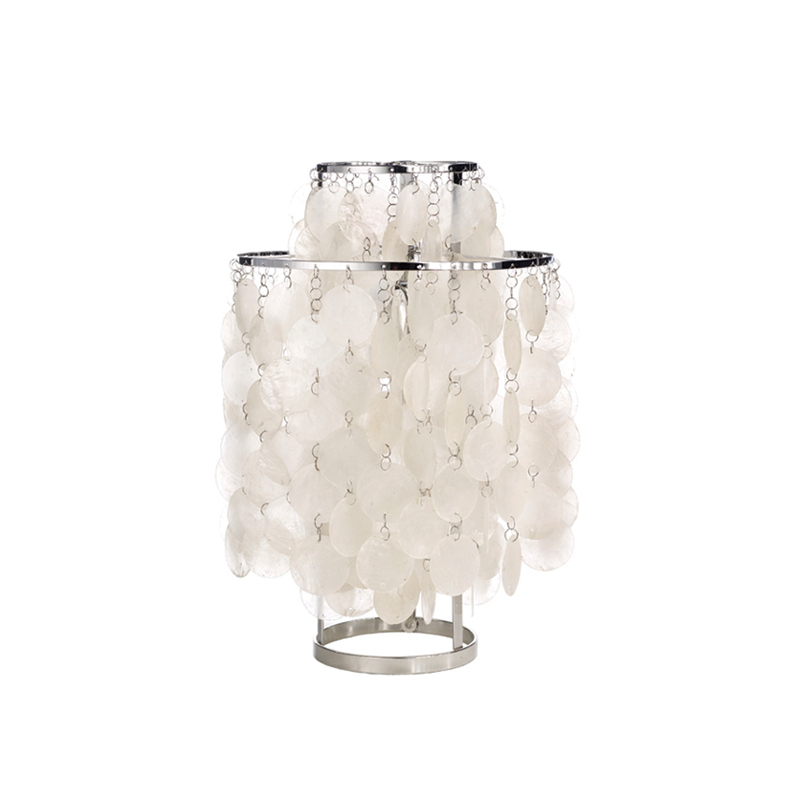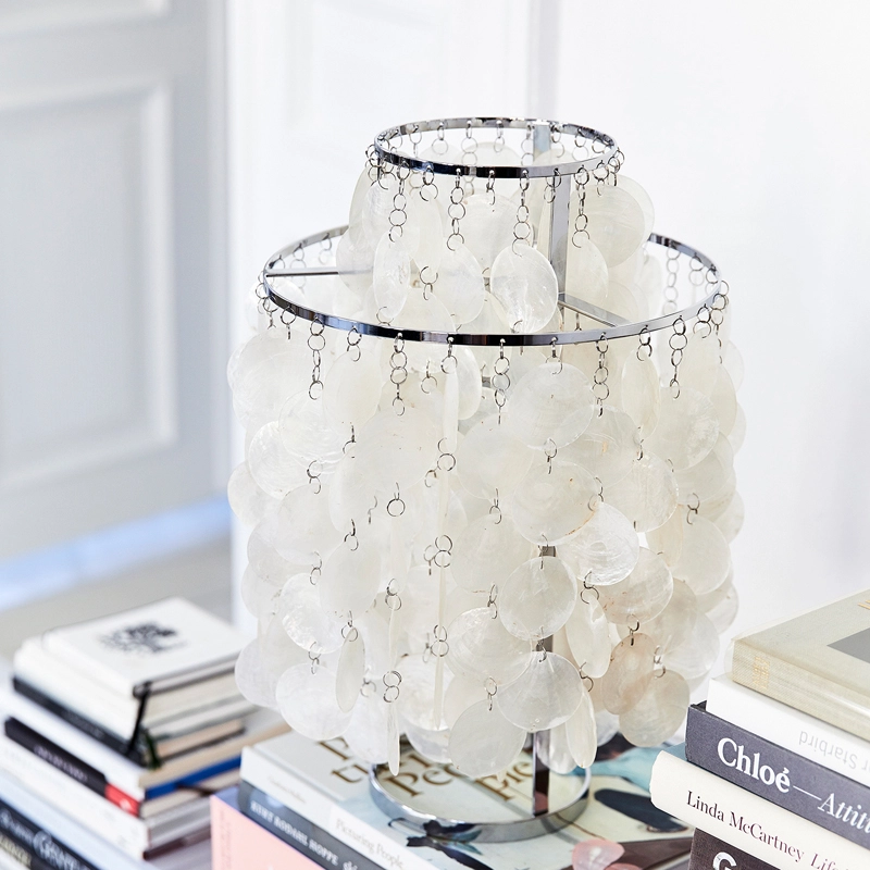 Beaucoup considèrent la collection Fun comme l'un des plus grands chefs-d'œuvre de Verner Panton dans le domaine de la conception d'éclairage. Depuis 1964, cette lampe de table a suscité la joie et une richesse d'histoires. Avec sa multitude de disques nacrés, la lampe Fun 2TM Verpan ajoute une touche de charme et un éclairage doux dans la chambre, le salon ou l'entrée.