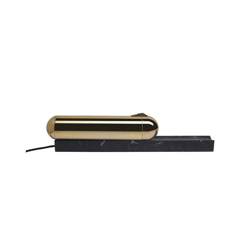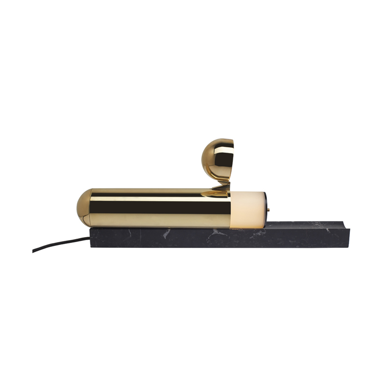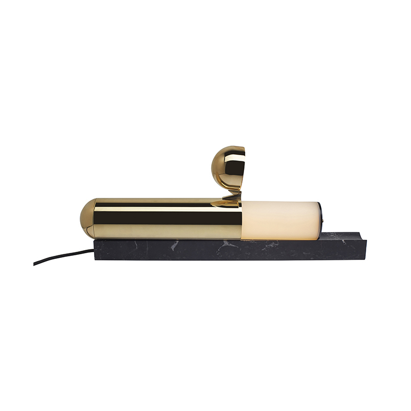 socle marbre, corps laiton poli, tube lumineux polycarbonate