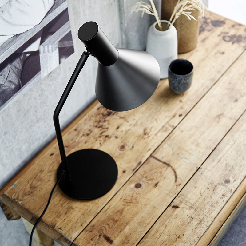 L'abat-jour conique, avec son intérieur blanc réfléchissant, dirige la lumière exactement là où vous en avez besoin. Un joint inclinable est situé entre l'abat-jour et le bras. La lampe est équipée d'un interrupteur assorti et d'un cordon en tissu qui complètent le look simple et monochrome.