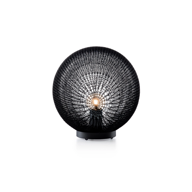 Madame Latoque fait partie de la collection Monsieur Tricot, une gamme d'éclairages pour l'extérieur éditée par Tribu, tricotés et crochetés à la main pour transformer votre terrasse et jardin en un lieu féérique à la nuit tombée. Les lampes à poser, conçues par le designer belge Ilia Eckardt, allient techniques traditionnelles, matériaux performants et technologie moderne. Eckardt a mis au point sa première collection d'éclairage extérieur tricoté, conçue comme une famille. Faites ainsi connaissance avec la gracieuse suspension Madame Latoque déclinée en trois tailles. Cette lampe à poser sphérique diffusent une lumière tamisée chaleureuse et projettent des ombres magnifiques, utilisée séparément ou brillant dans une subtile association de dimensions et de tissages différents.
