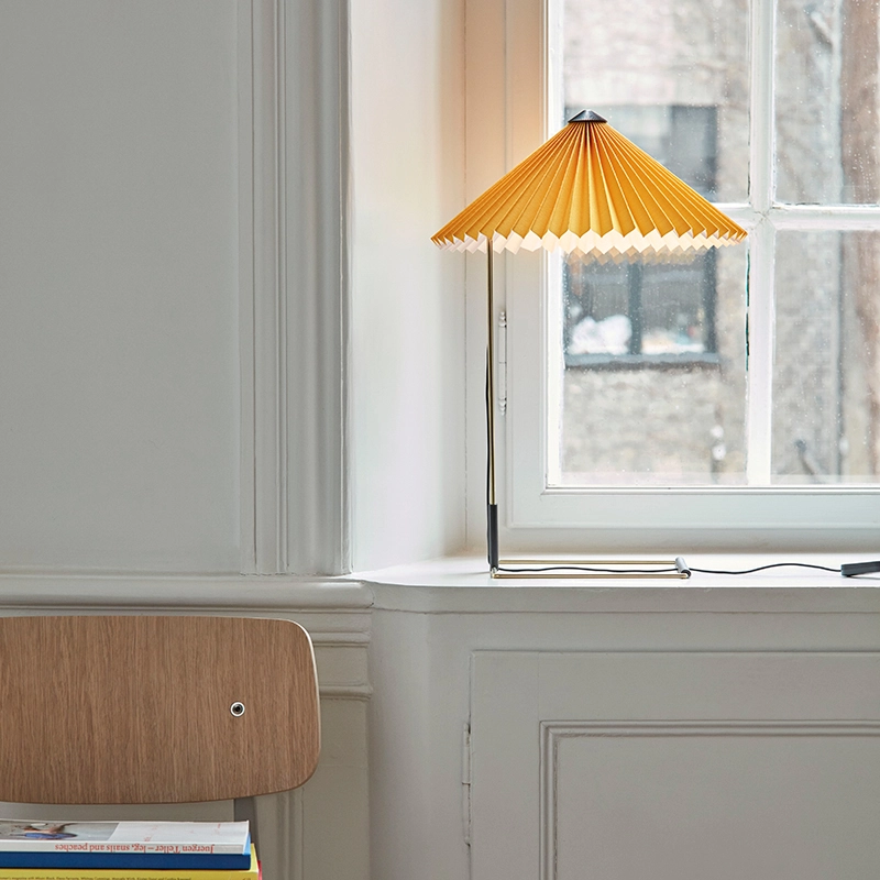 Dessinée par Inga Sempé pour Hay, la lampe de table Matin offre un design à la fois contemporain et poétique, avec une construction qui allie finesse visuelle et robustesse physique. Elle se compose d'un cadre en fil d'acier fini en laiton poli et d’un abat-jour en coton plissé disponible dans une variété de couleurs vives. La source lumineuse est une LED intégrée, offrant une lumière diffuse vers le bas. La lampe Matin de Hay est également équipée d’un variateur d’intensité lumineuse digital. Déclinée en deux tailles, cette lampe s’intègre aussi bien dans un salon, sur un bureau ou sur une table de chevet.