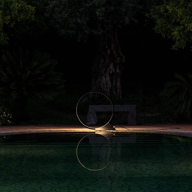 "O" est une lampe à poser conçue à partir d'aluminium et de silicone, ce qui permet la légèreté du design. En effet grâce à son faible poids