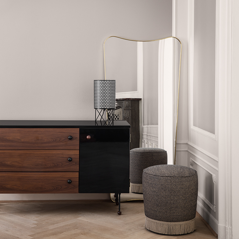 En 1955, l'architecte fonctionnaliste Barba Corsini rénove le bâtiment « La Pedrera » à Barcelone d'Antoni Gaudi, et réalise le mobilier destiné aux appartements dont une série de luminaires. Dessinée par Joaquim Ruiz Millet en hommage à son mentor Corsini, la suspension Pedrera Ana s'inspire des plafonds de la Pedrera, les abats-jours reprenant notamment la forme des cheminées en tôle perforée. A la fois classique et moderne, ce luminaire émet une lumière directe vers le bas, et atténuée sur les côtés grâce au métal perforé. Editée par Gubi, la lampe à poser Pedrera ABC apporte une touche graphique dans un salon ou une chambre et diffuse une lumière douce.