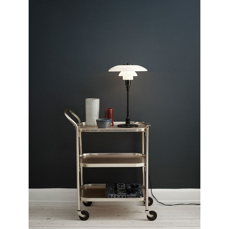 Le luminaire PH 3/2 Table dessiné par Poul Henningsen pour Louis Poulsen est conçu selon le principe d'un ensemble d'abat-jour réfléchissants, qui dirige la majeure partie de la lumière vers le bas. Les abat-jour sont composés de trois couches de verre opalisé soufflé, poli à l’extérieur et sablé à l’intérieur, qui émettent une lumière douce et diffuse. Intemporelle, la lampe PH 3/2 Louis Poulsen s'intègre dans les styles d'intérieurs.